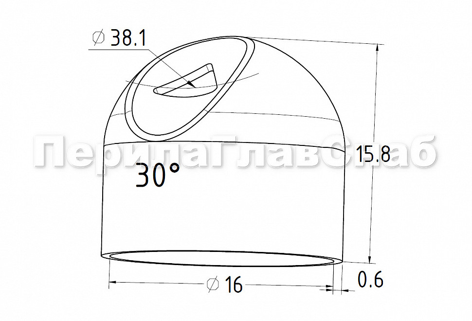 Наконечник штампованный (СПС) косой 30° на трубу Ø16 мм, для поручня Ø38.1 мм, полированный, нержавеющий, (AISI 201) k212-3 купить в Перми