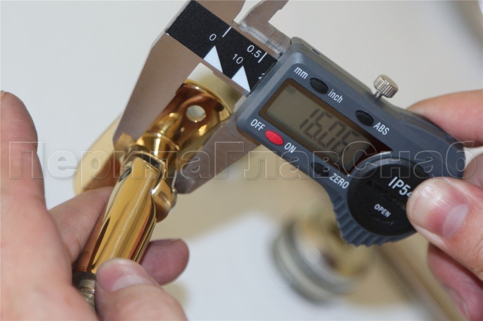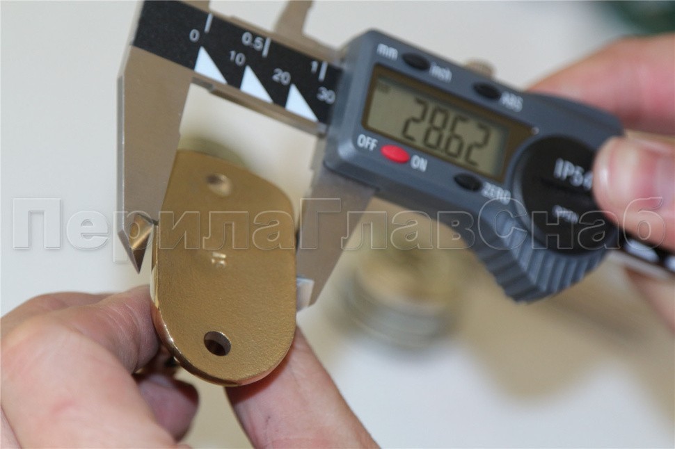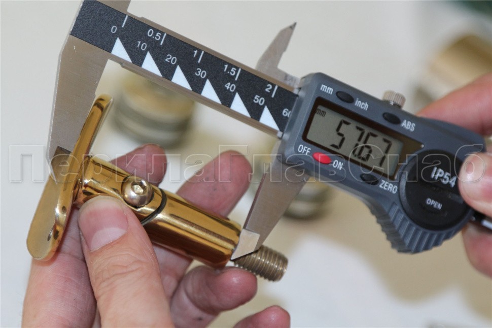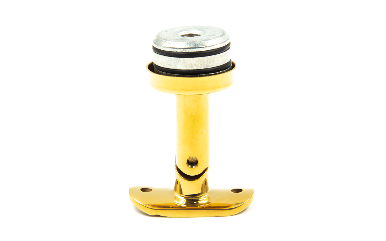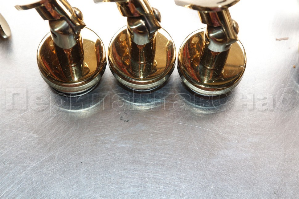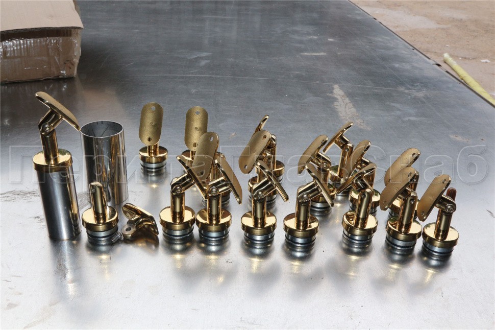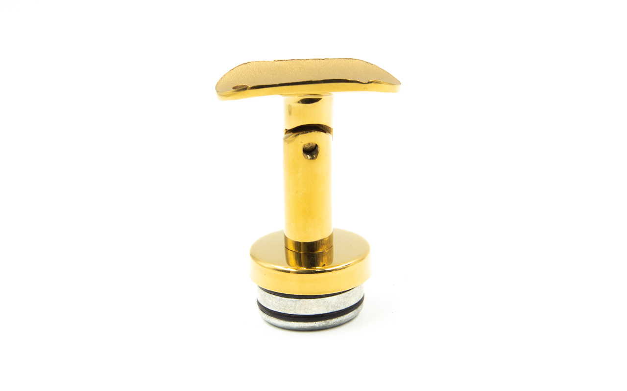 Наконечник на стойку, под золото, Ø38.1 мм, палец регулируемый, с механическим креплением и юбкой, закрывающей срез трубы, с регулируемым ложементом под поручень Ø50.8 мм