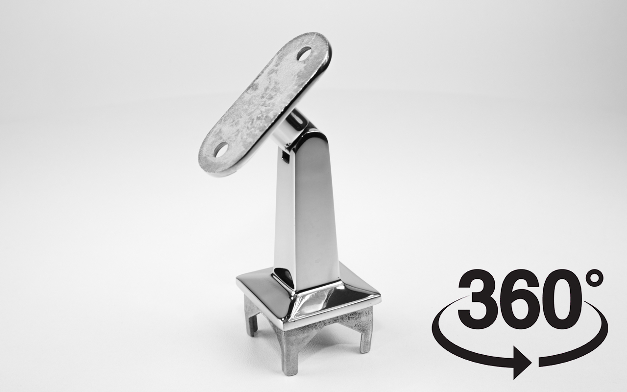 Наконечник на стойку из профильной трубы 40х40 мм, с регулируемым ложементом под плоскость, литой, полированный, нержавеющий AISI 304 k222-3