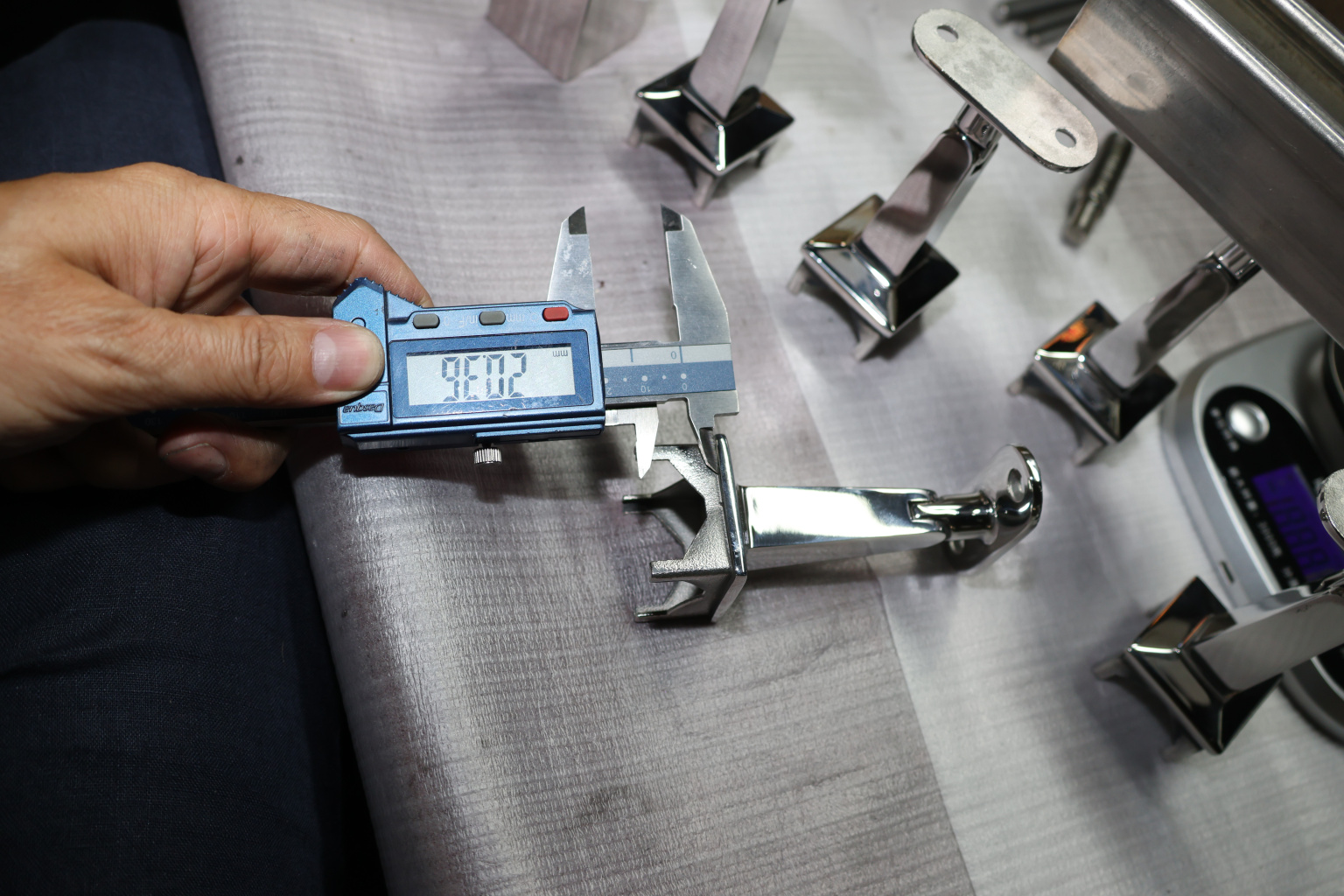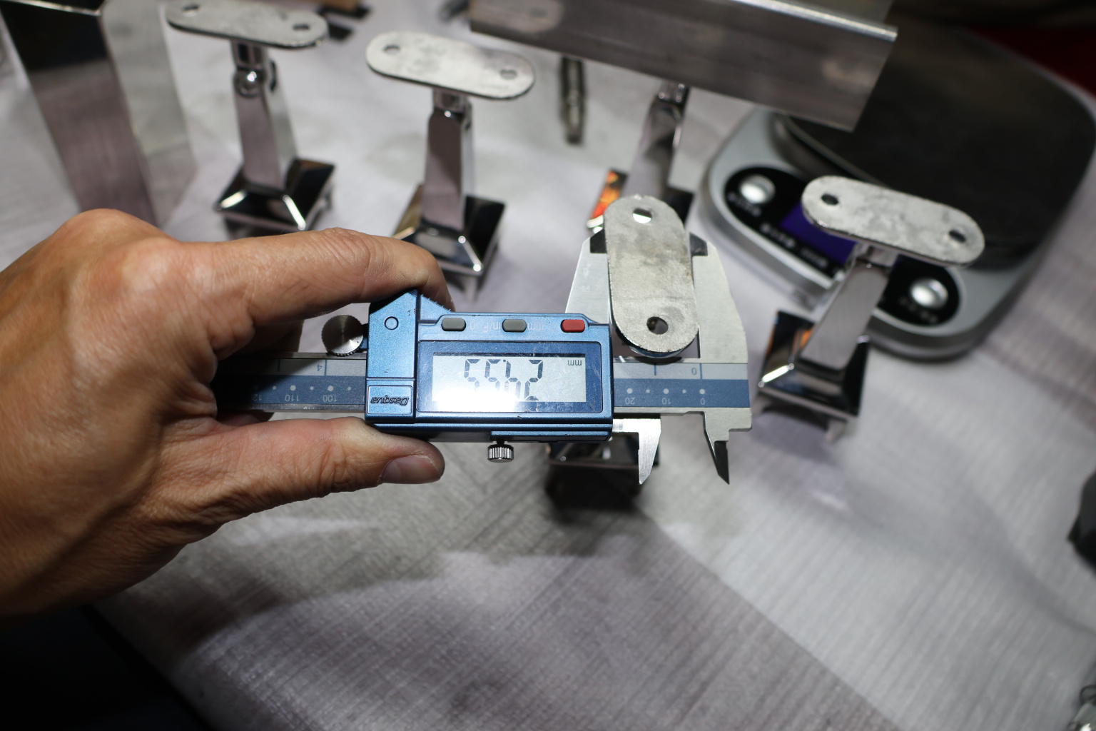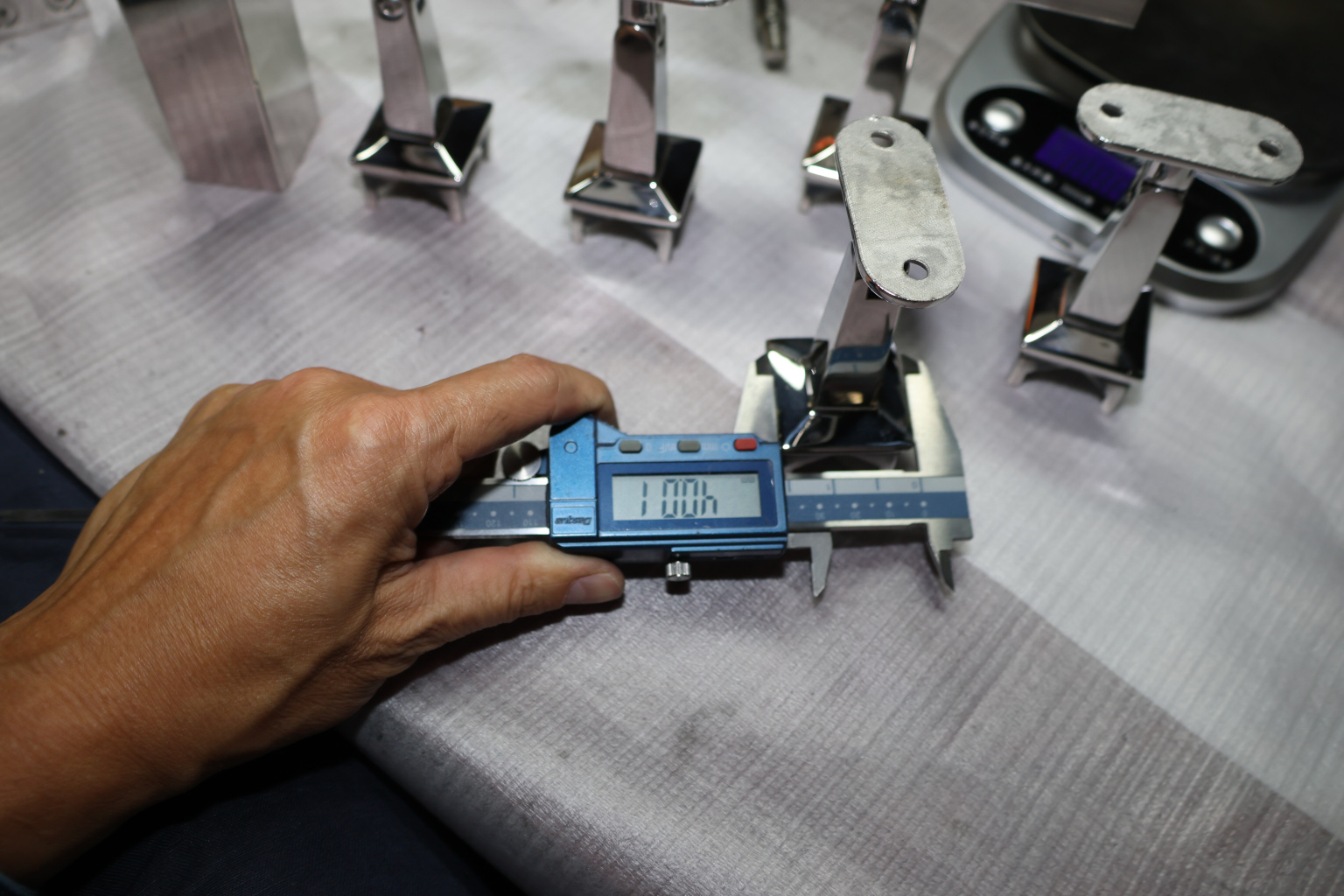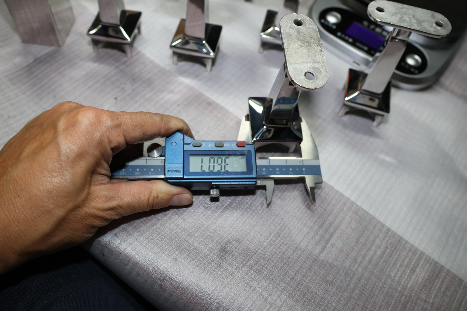 Наконечник на стойку из профильной трубы 40х40 мм, с регулируемым ложементом под плоскость, литой, полированный, нержавеющий AISI 304 k222-3