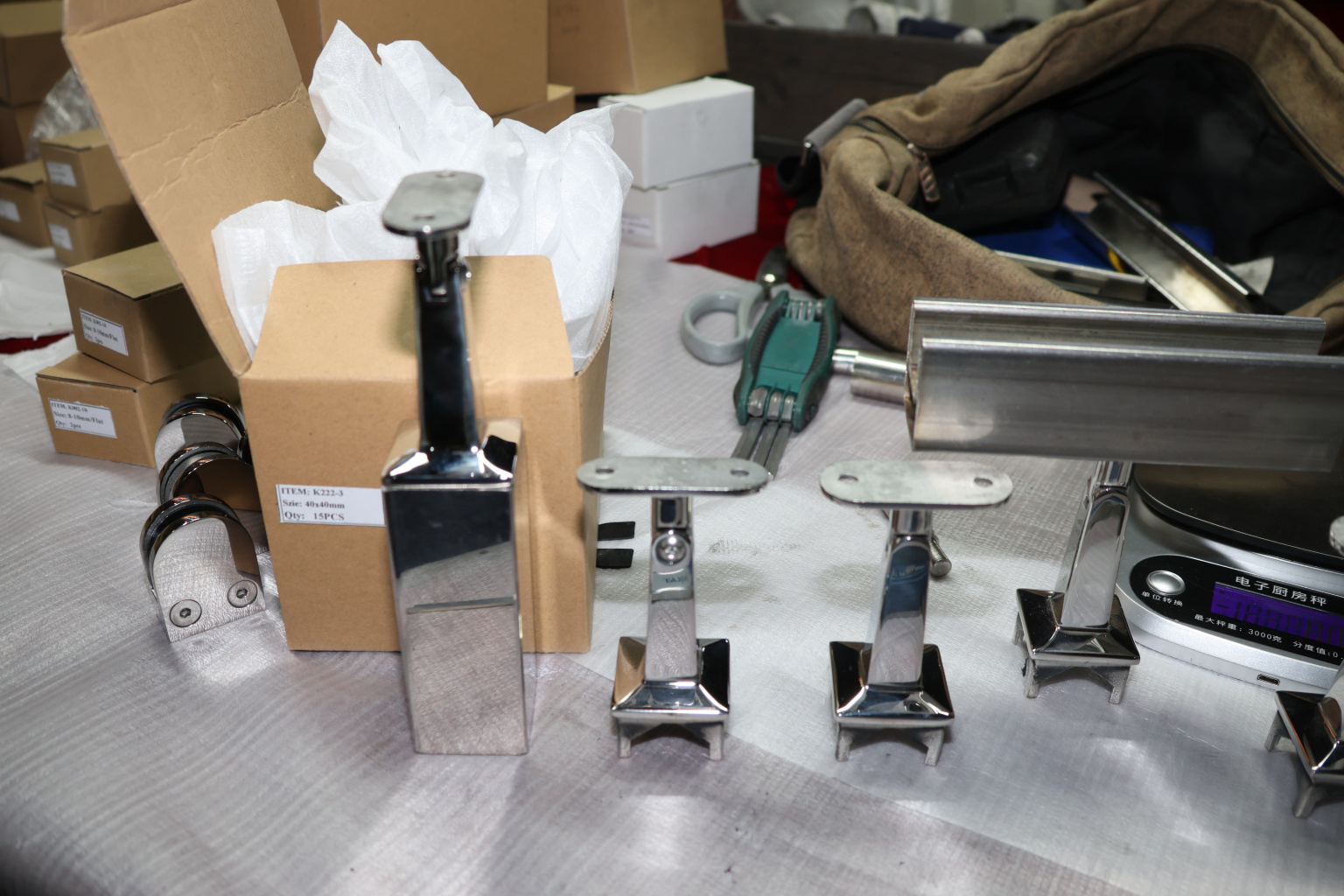 Наконечник на стойку из профильной трубы диаметром 40х40 мм, с регулируемым ложементом под плоскость. Наконечник литой, полированный, нержавеющий. Марка стали - AISI 304