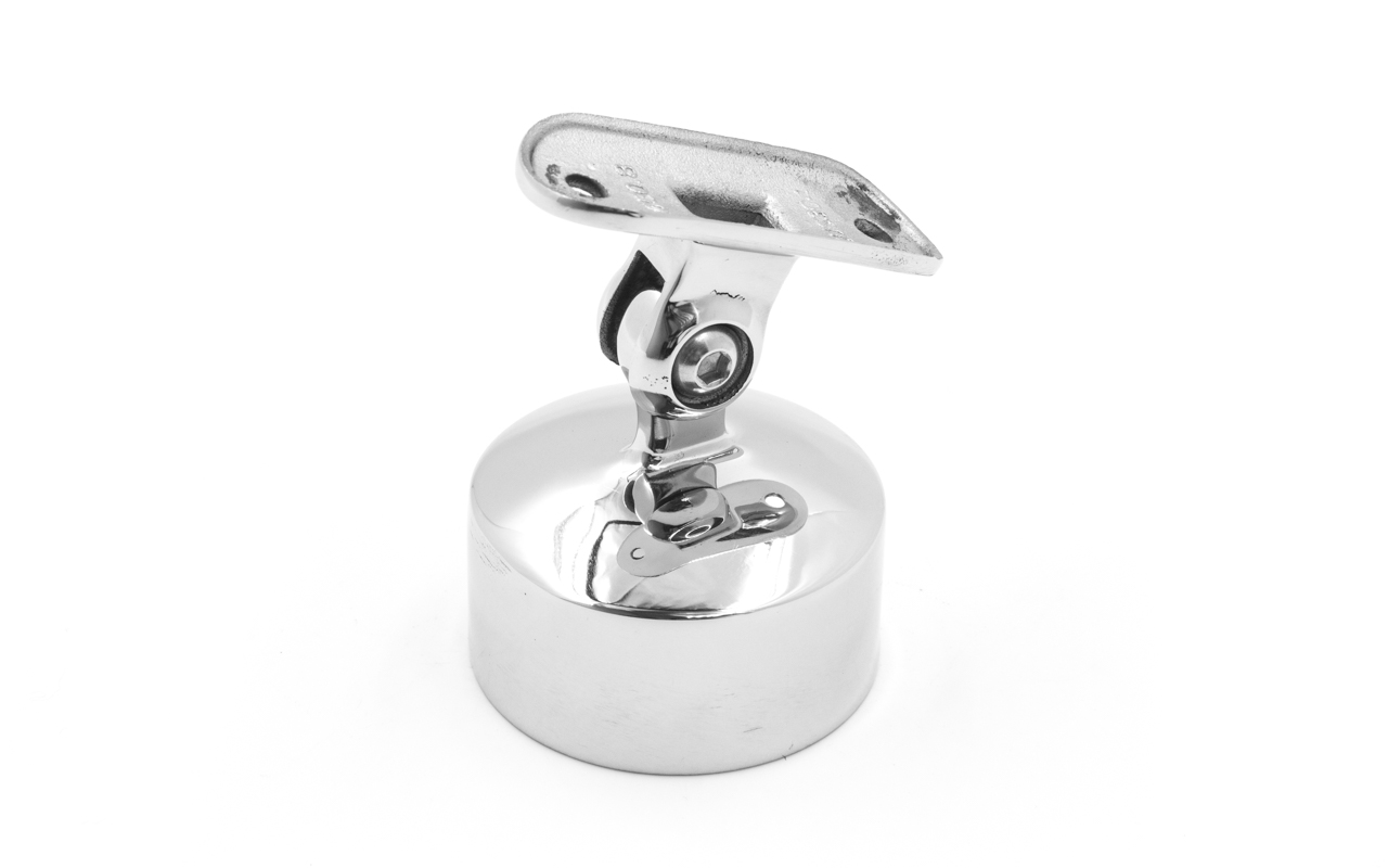 Предназначен для соединения поручня Ø50.8 мм со стойкой Ø50.8 мм. Деталь с регулируемым ложементом, что позволяет монтировать её как и на горизонтальных площадках, так на лестничных маршах.