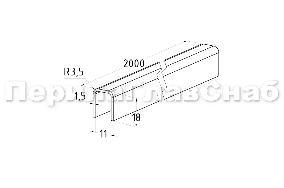 Профиль П-образный t=1,5 мм под стекло 20 мм, шлифованный, длина 2000 мм AISI 304 Ф-1148 купить в Перми