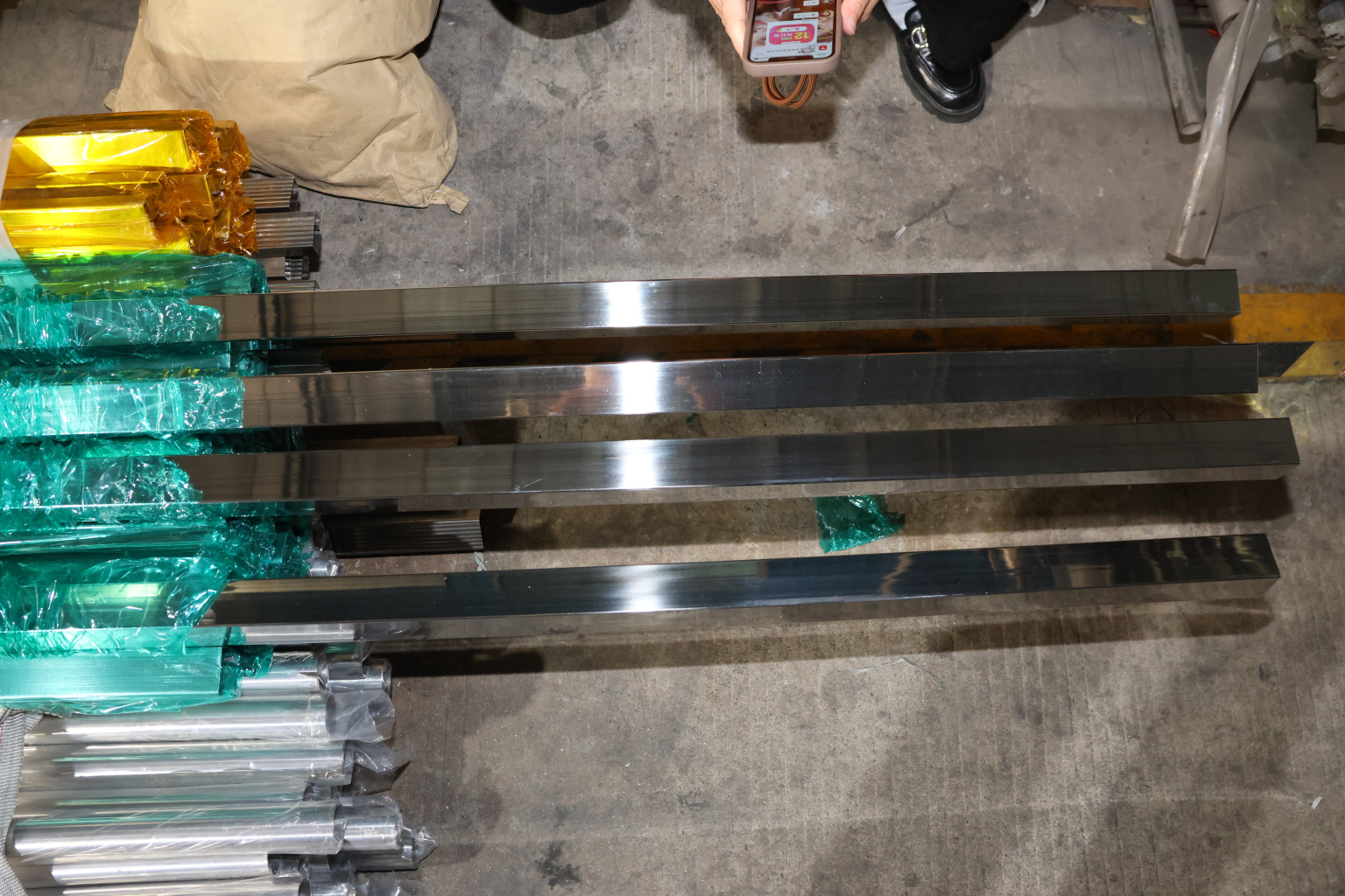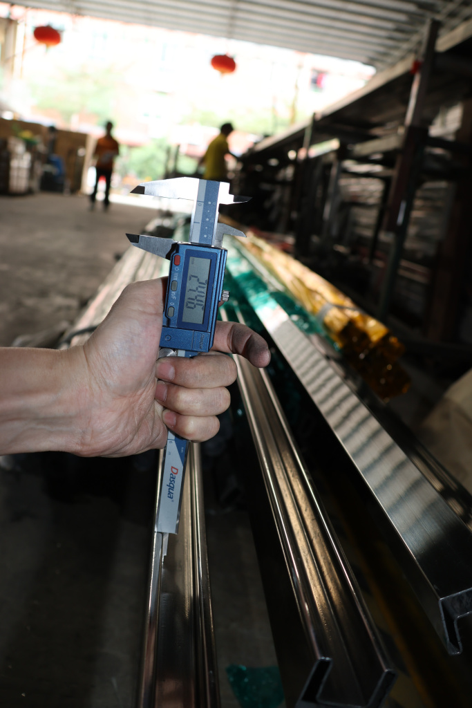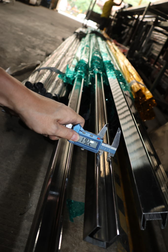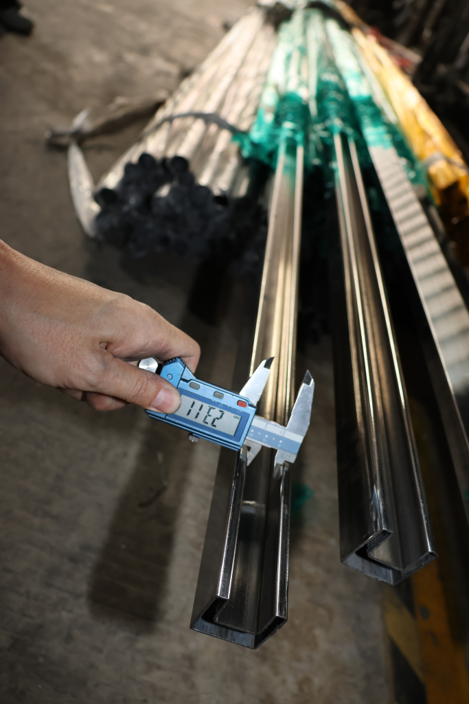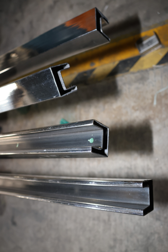 Труба 40х40 мм с пазом 24х24 мм под стекло, полировка, AISI 304 #600
