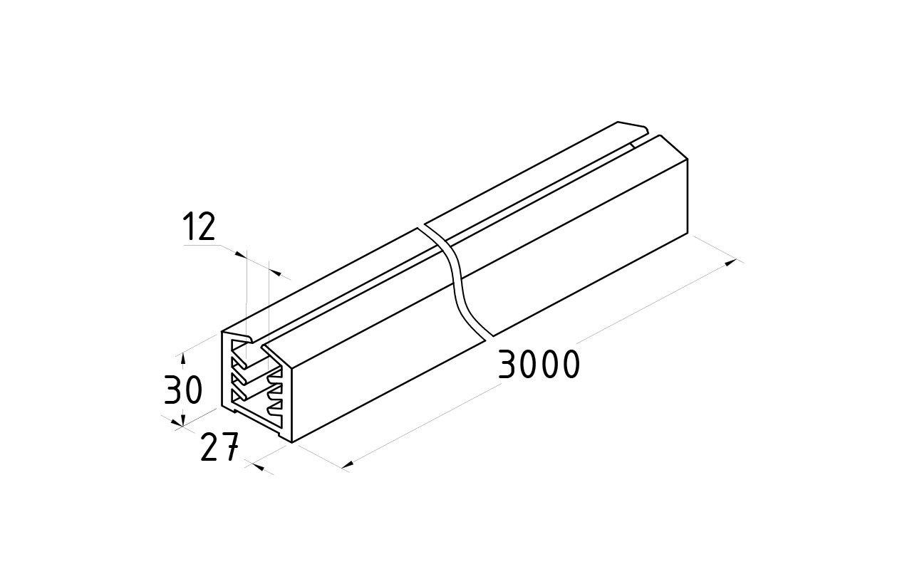 Уплотнитель в поручень с пазом 27х30 для стекла 12 мм, EPDM Фk306