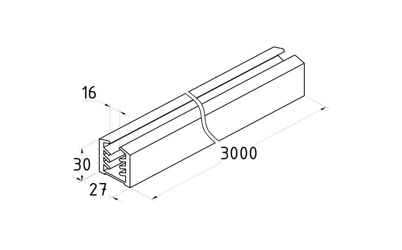 Уплотнитель в поручень с пазом 27х30 для стекла 8+8 мм, EPDM Фk307