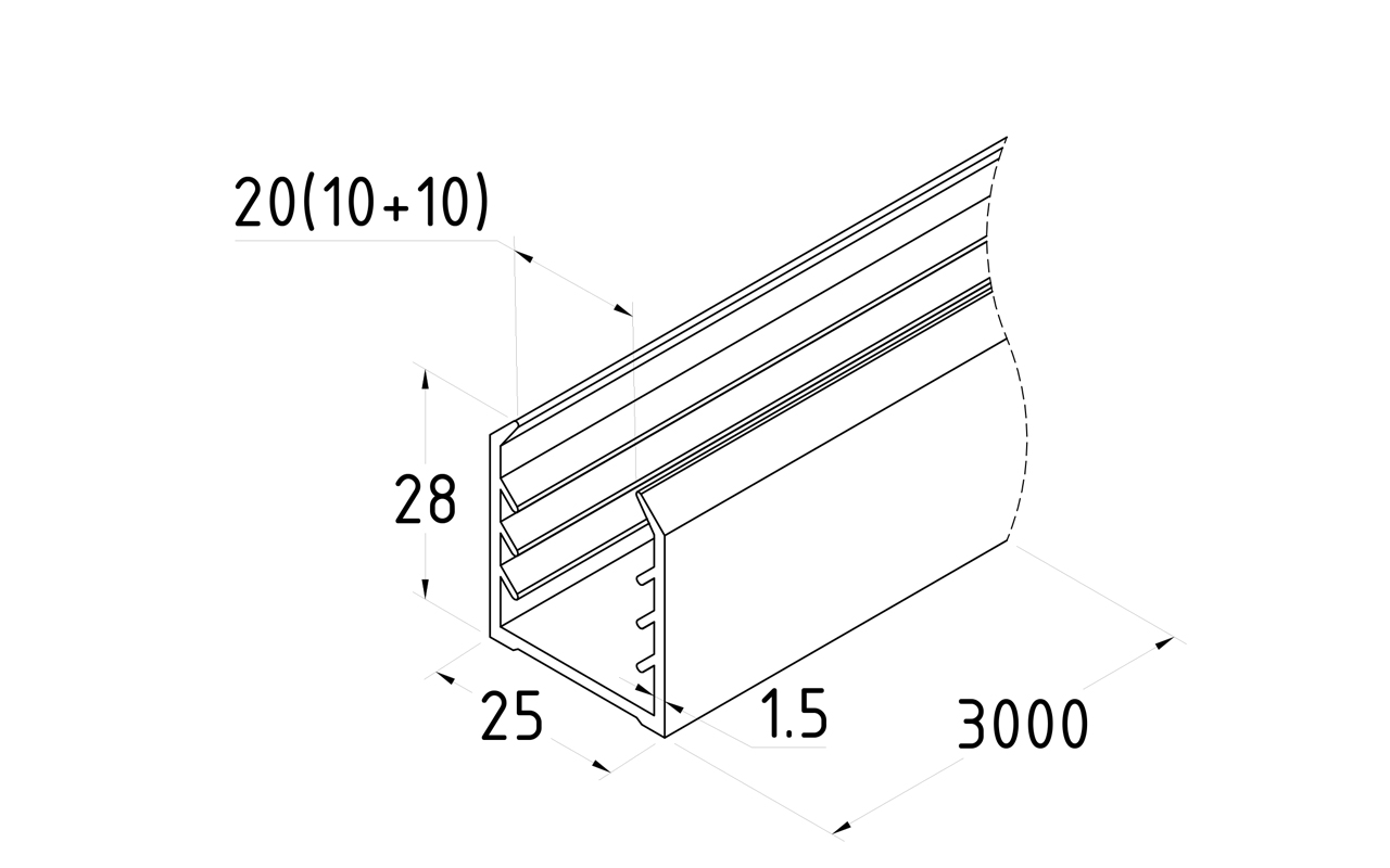 Уплотнитель в поручень с пазом 27х30 для стекла 10+10мм, EPDM СЕРЫЙ
