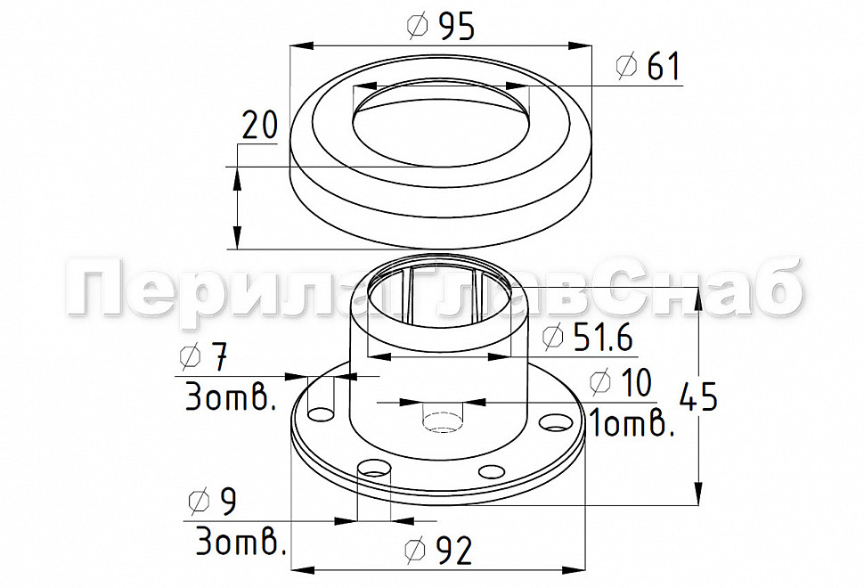 Фланец стойки 42/90 х 5 (4,3) х AISI 316 #200 3 отв х М10 х 20 k116-42-6 купить в Перми