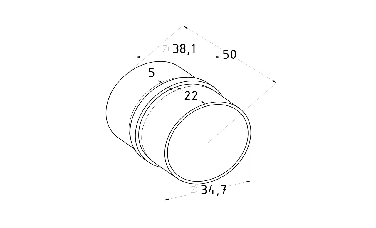 Заглушка на трубу Ø38.1х1.5 мм полированная штампованная (AISI 304) k036-5