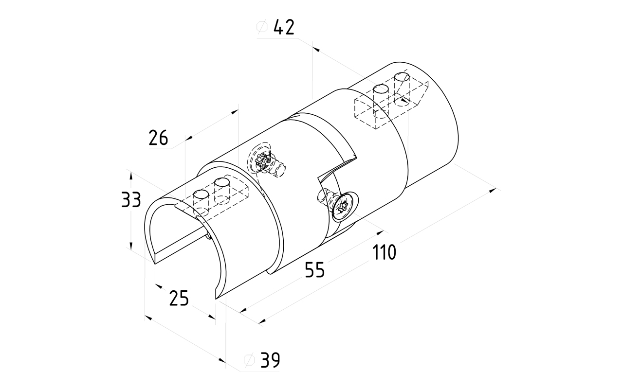 Соединитель поручня с пазом регулируемый, d=42,4 мм, полированный, AISI 304