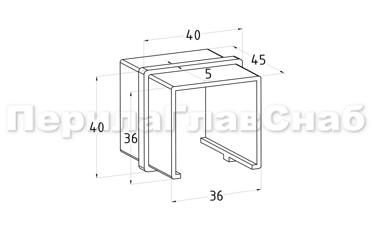 Служит для соединения трубы 40x40 с пазом 24x42. Необходимо отпилить нижнюю кромку