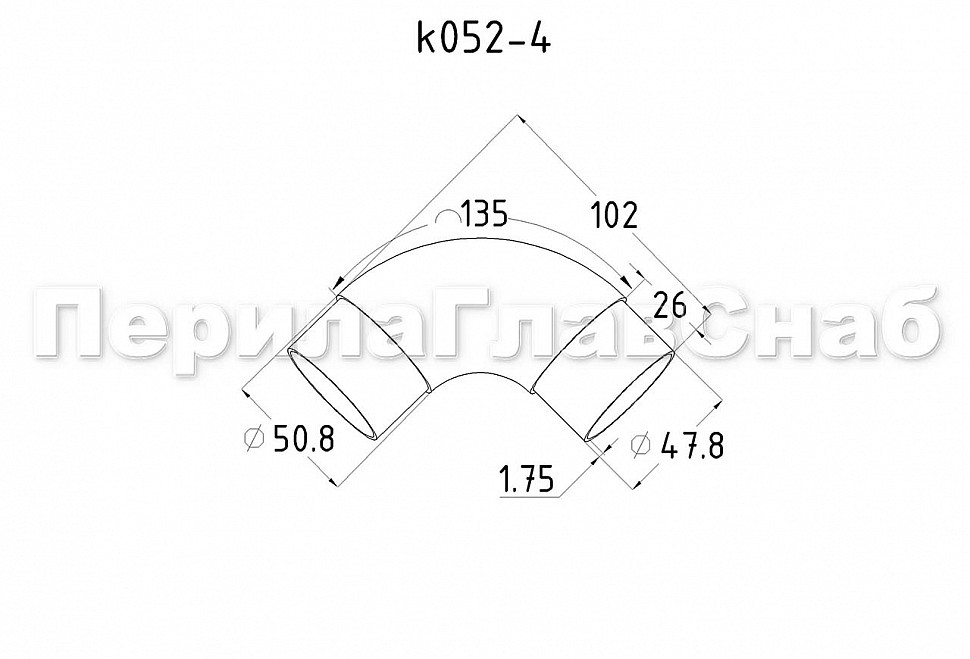 Ø50.8х1.45 мм, 90° с вставками для трубы