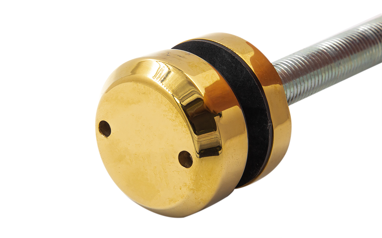 Стеклодержатель Ø50х10х18, шпилька М16х205 мм, для стекла 8-40 мм, AISI (201), с возможностью регулировки выноса до 65 мм, для торцевого крепления стекла, полированный, литой k277-3 купить в Перми