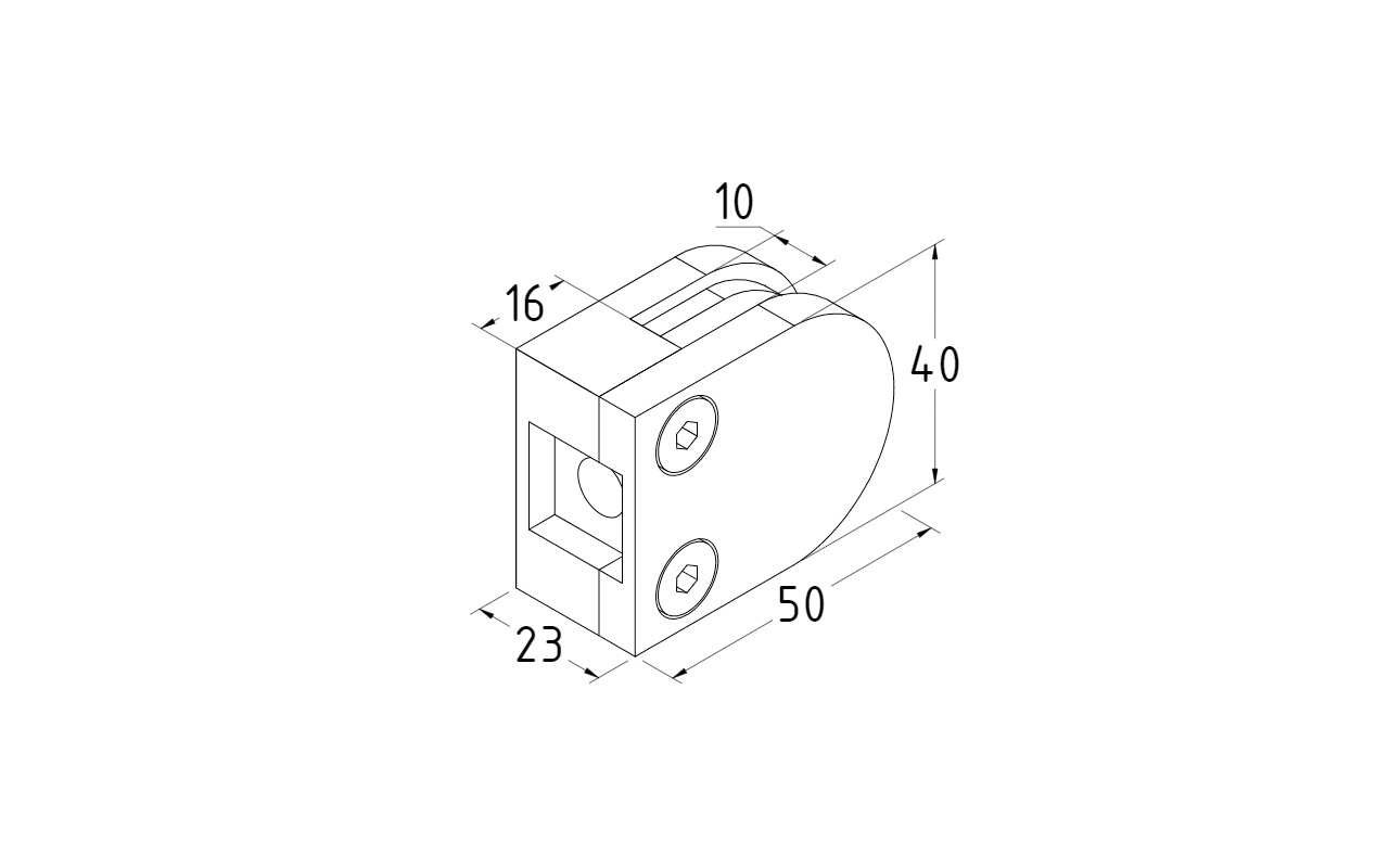 Стеклодержатель штампованный под стекло 10 мм (5+5 мм), на плоскость 40х24х54 полированный (AISI 304) k539-10