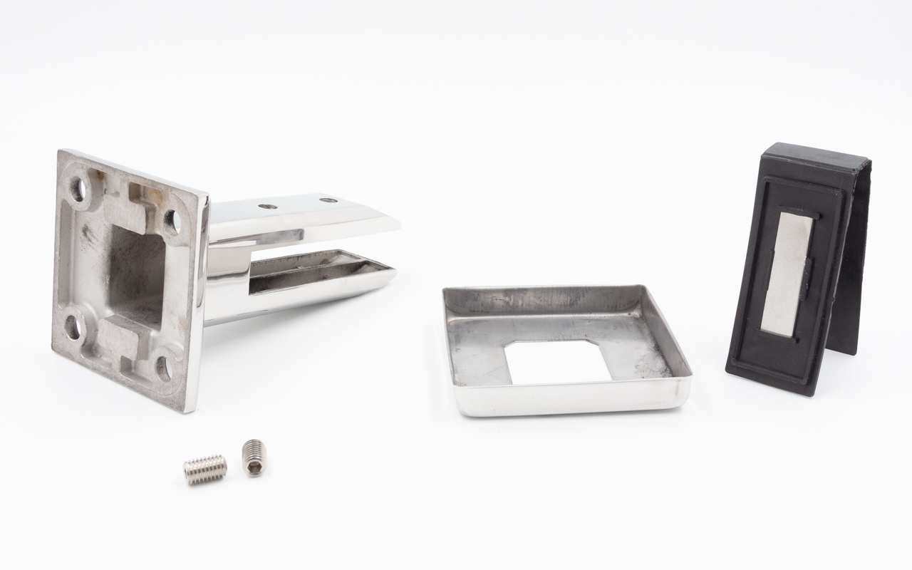 Стеклодержатель штампованный  под стекло 8 мм (4+4 мм), квадратный, под стойку Ø38.1 мм (40х24х48), полированный (AISI 304) k351 купить в Перми
