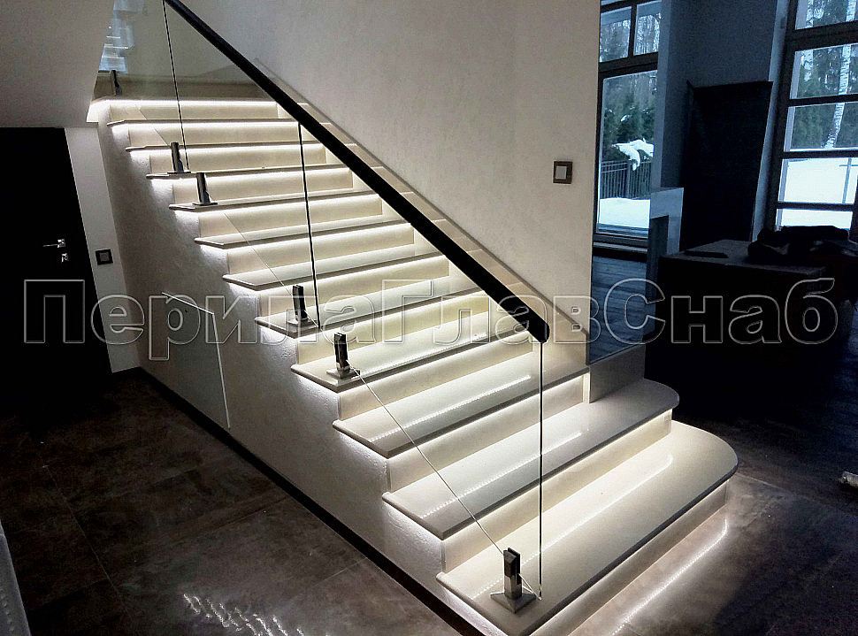 Если по проекту предусмотрен поручень, то мы рекомендуем использовать трубу с пазом прямоугольного сечения 60х40 (k824-4, k824-2, k824-5) или круглого сечения Ø48 (k822-3) и Ø42.4 мм (k820-3). Кромку стекла также можно закрыть с помощью маленького п-образного профиля из нержавеющей стали Ф-0454 и Ф-0455.
