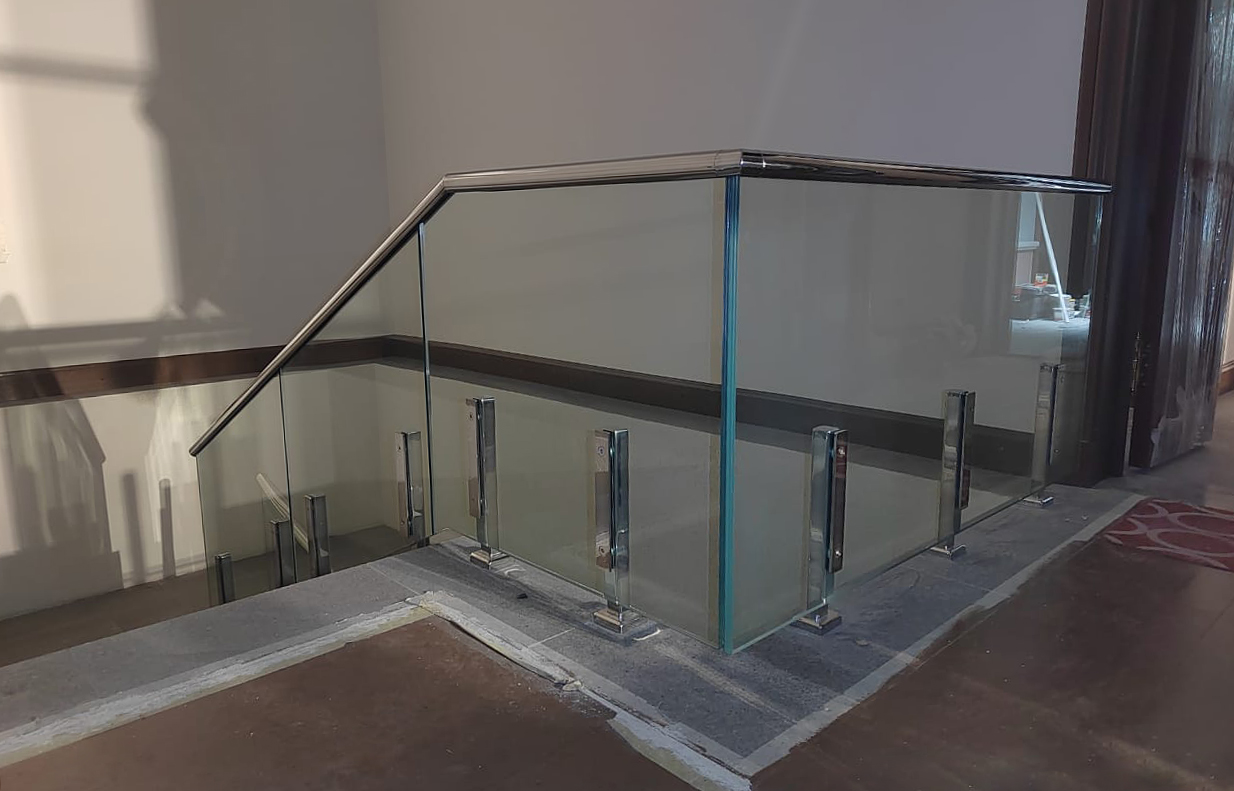 Прижимная пластина фиксирует стекло по всей длине пластины и позволяет более жестко держать ограждение. Стенки трубы стеклодержателя выполнены из стали толщиной 5 мм, что выгодно выделяет нашу модель на фоне конкурентов, которые делаются из трубы 1.5 мм.