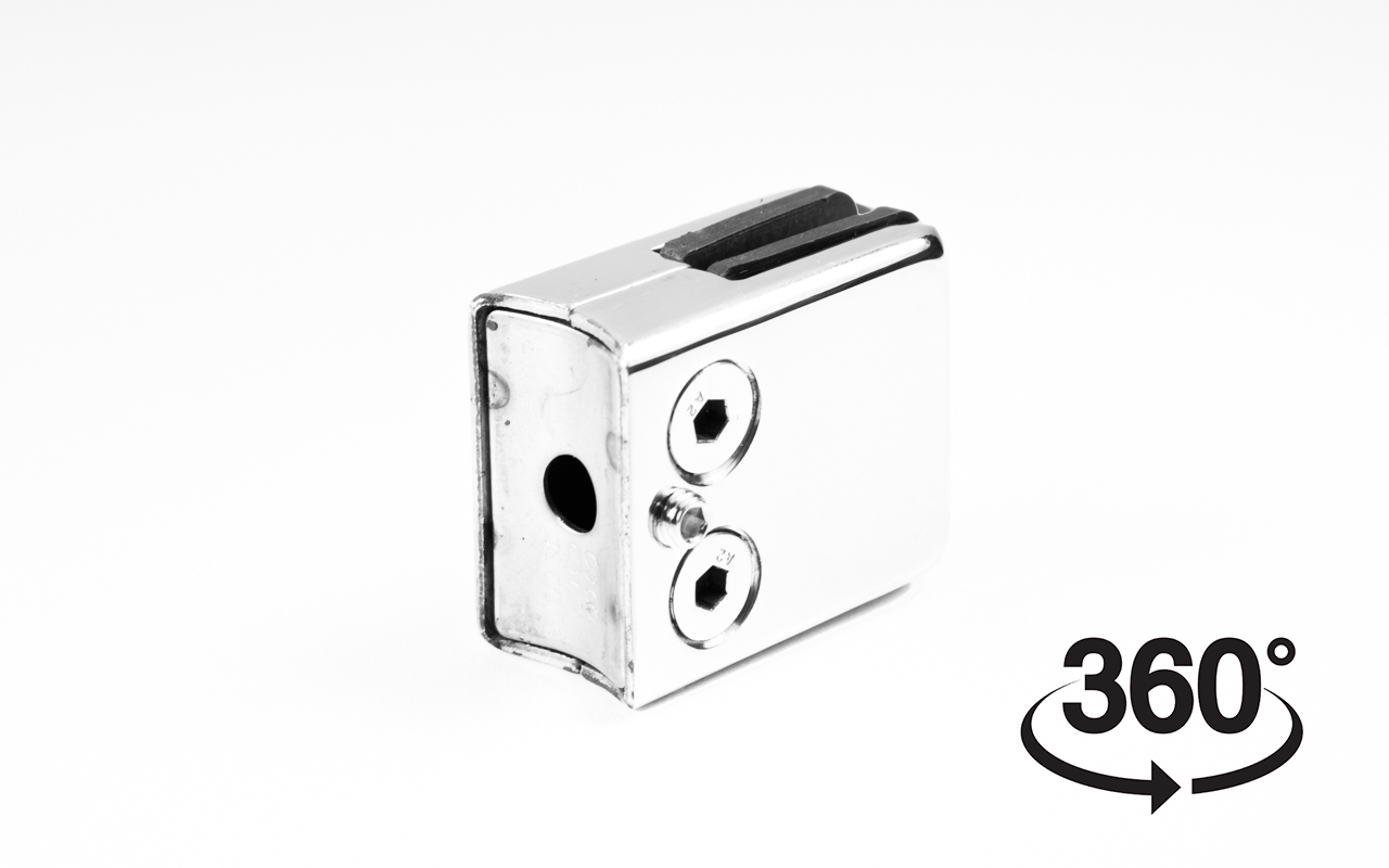 Cпроектирован и разработан для быстрого монтажа ограждений со стеклом толщиной 8 мм на стойку Ø38.1 мм. Производится со специальным установочным отверстием и утолщенными краями, что позволяет монтировать его на самосборных ограждениях и на сварку. Нагрузка до 20 кг. По виду полностью повторяет k003, но существенно дешевле своего литого аналога.