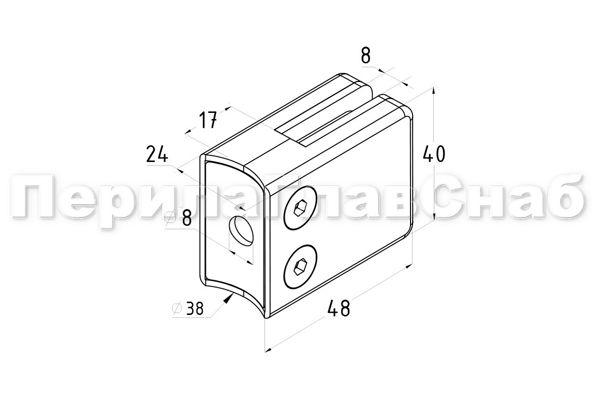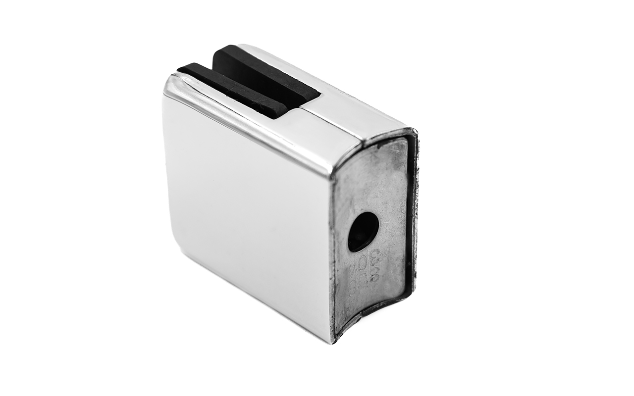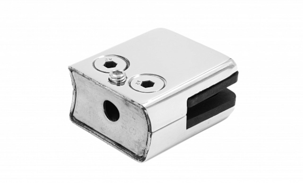 Стеклодержатель штампованный под стекло 8 мм (4+4 мм), под стойку Ø38.1 мм 40х24х55, полированный (AISI 304) k038 купить в Перми