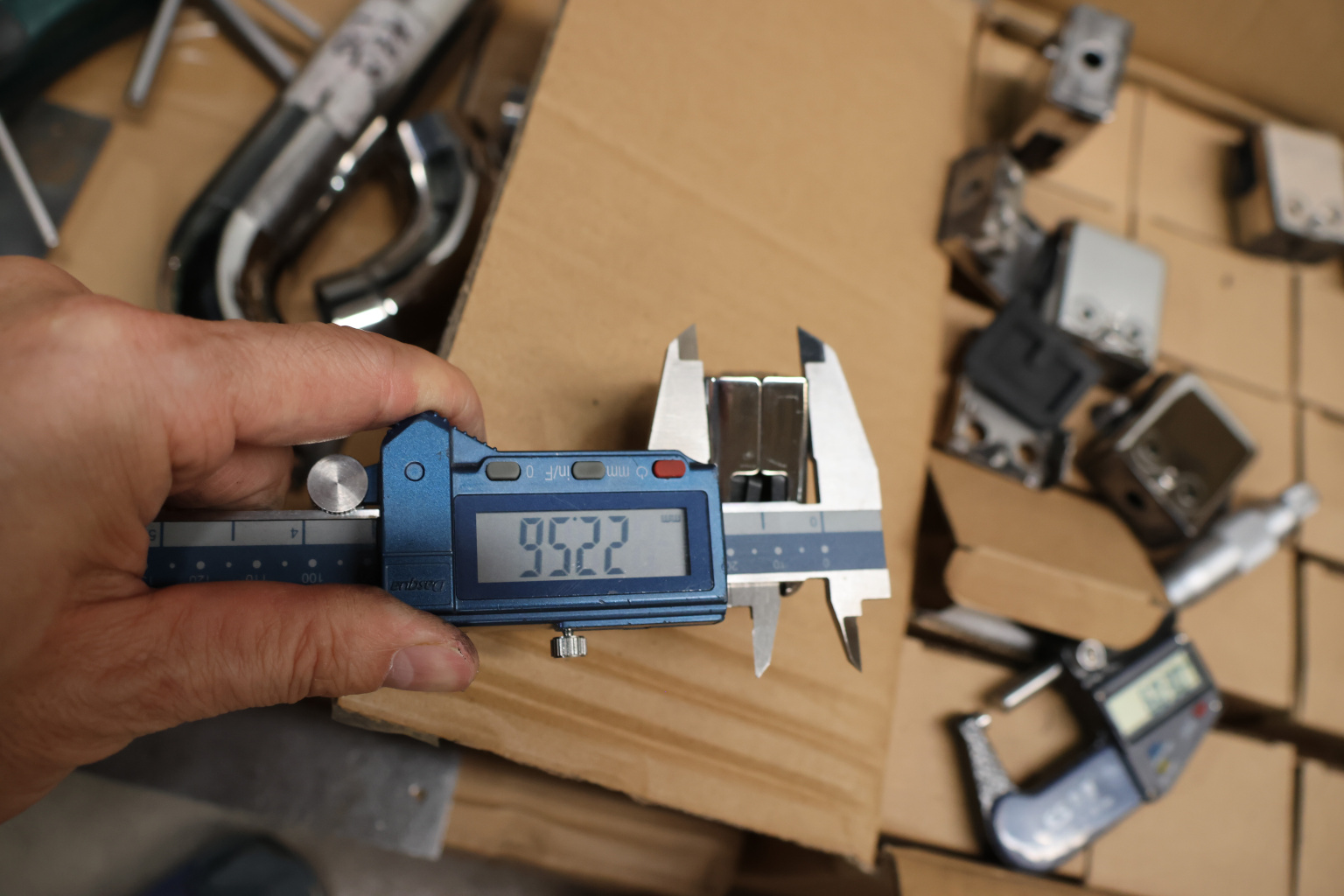Наконечник на стойку из профильной трубы 40х40 мм, с регулируемым ложементом под плоскость, литой, полированный, нержавеющий AISI 304 k222-3