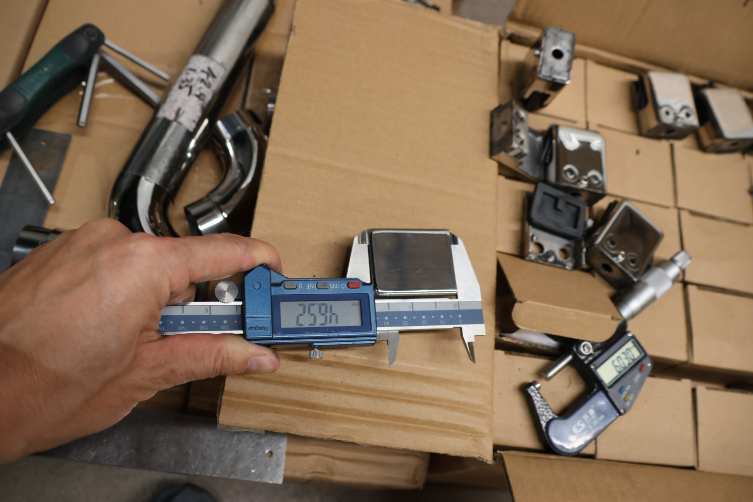 Наконечник на стойку из профильной трубы 40х40 мм, с регулируемым ложементом под плоскость, литой, полированный, нержавеющий AISI 304 k222-3 купить в Перми