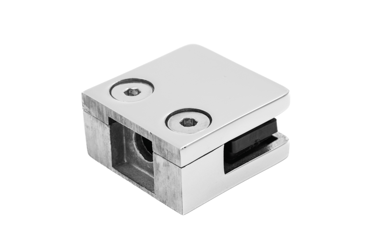 Стеклодержатель штампованный  под стекло 8 мм (4+4 мм), квадратный, под стойку Ø38.1 мм (40х24х48), полированный (AISI 304) k351 купить в Перми