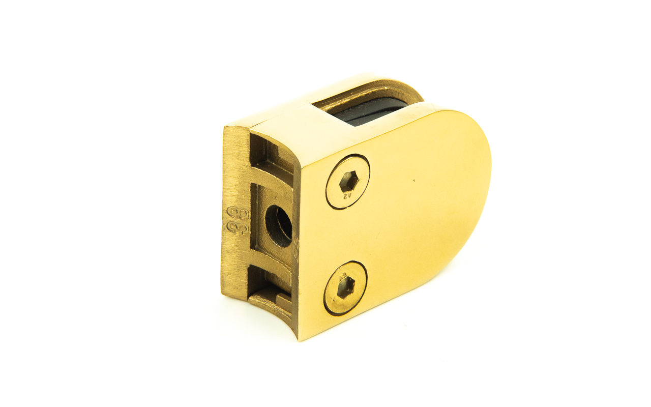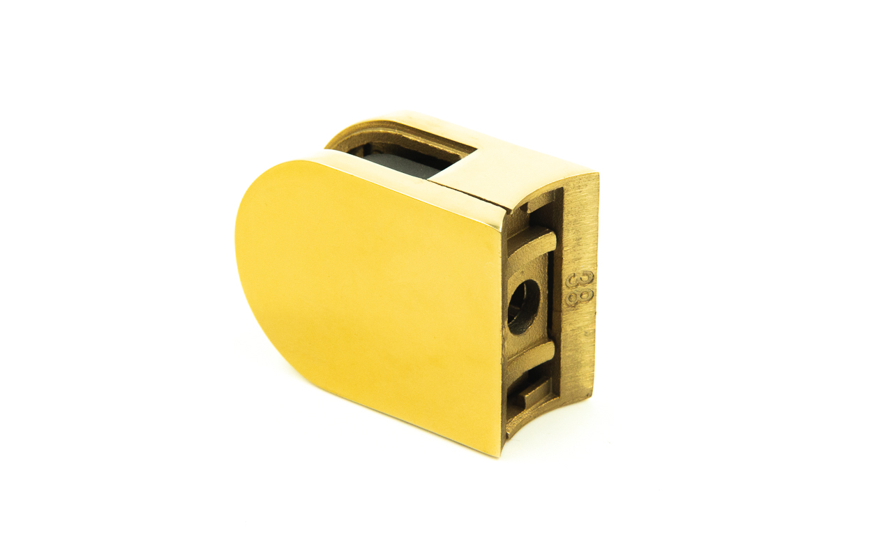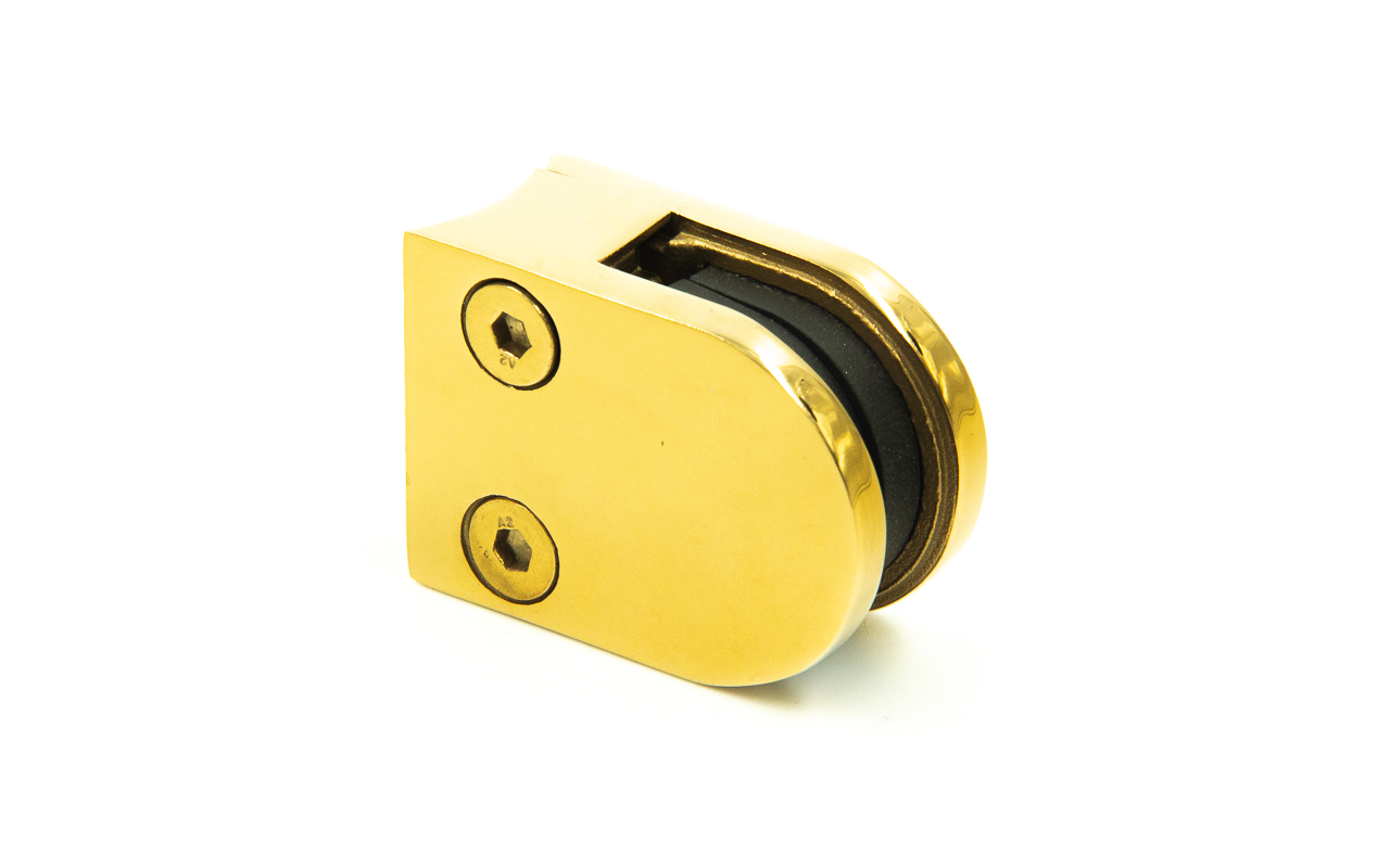 Стеклодержатель литой на трубу Ø38.1 мм, под золото, в комплекте с EPDM вставками под стекло 8 мм, дизайн - закругленный