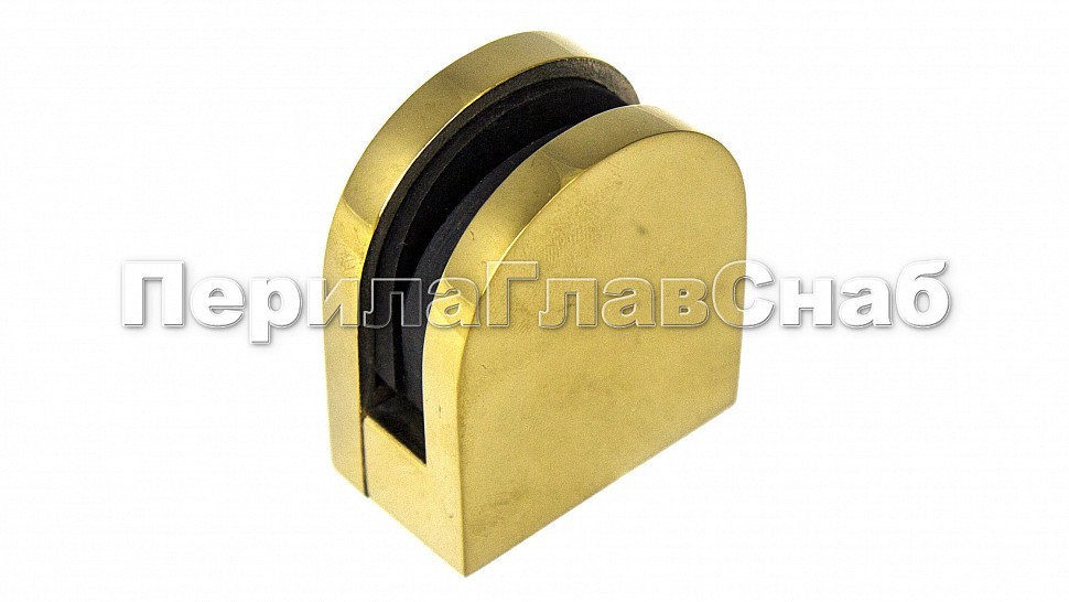 Стеклодержатель литой с вставками под стекло 8 мм (4+4 мм), закругленный под Ø38.1 мм, 40х22х50, золотой k001-88 купить в Перми
