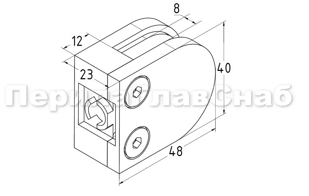 Стеклодержатель литой, под стекло 8 мм. 4+4 мм. на плоскость 40х22х48 полированный (AISI 304) k002-2 купить в Перми