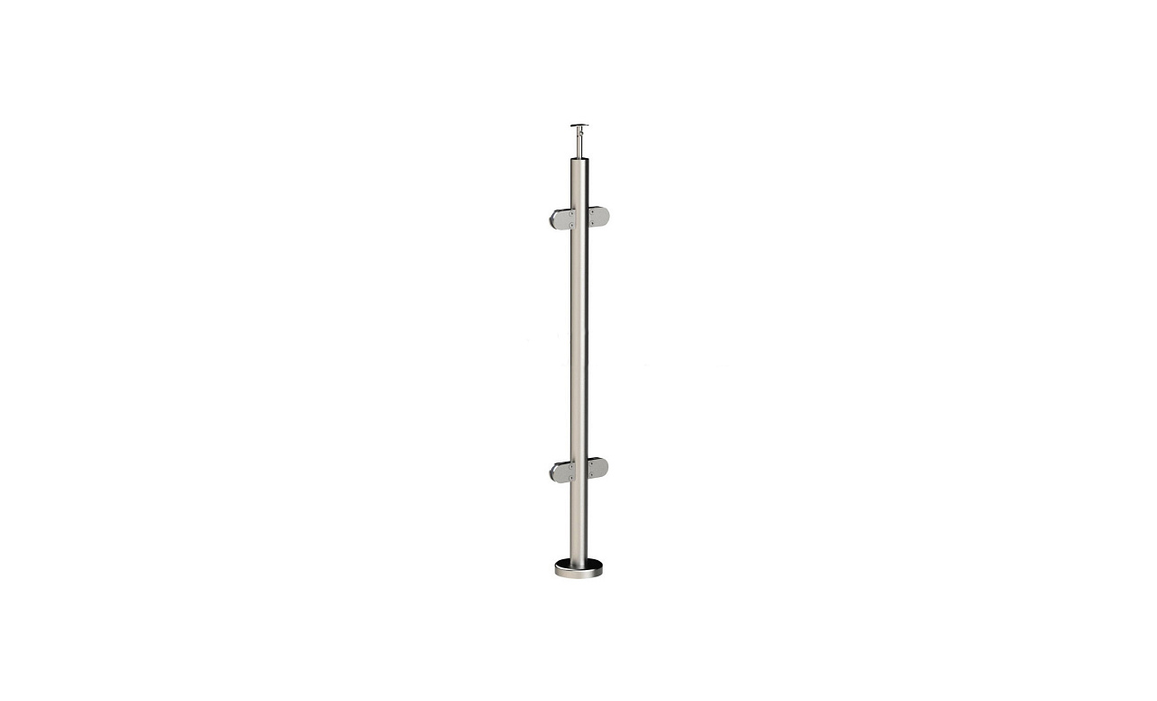 Стойка круглая Ø38.1: 4 литых зажимных стеклодержателя, полированная, высота 950 мм (AISI 304) k724