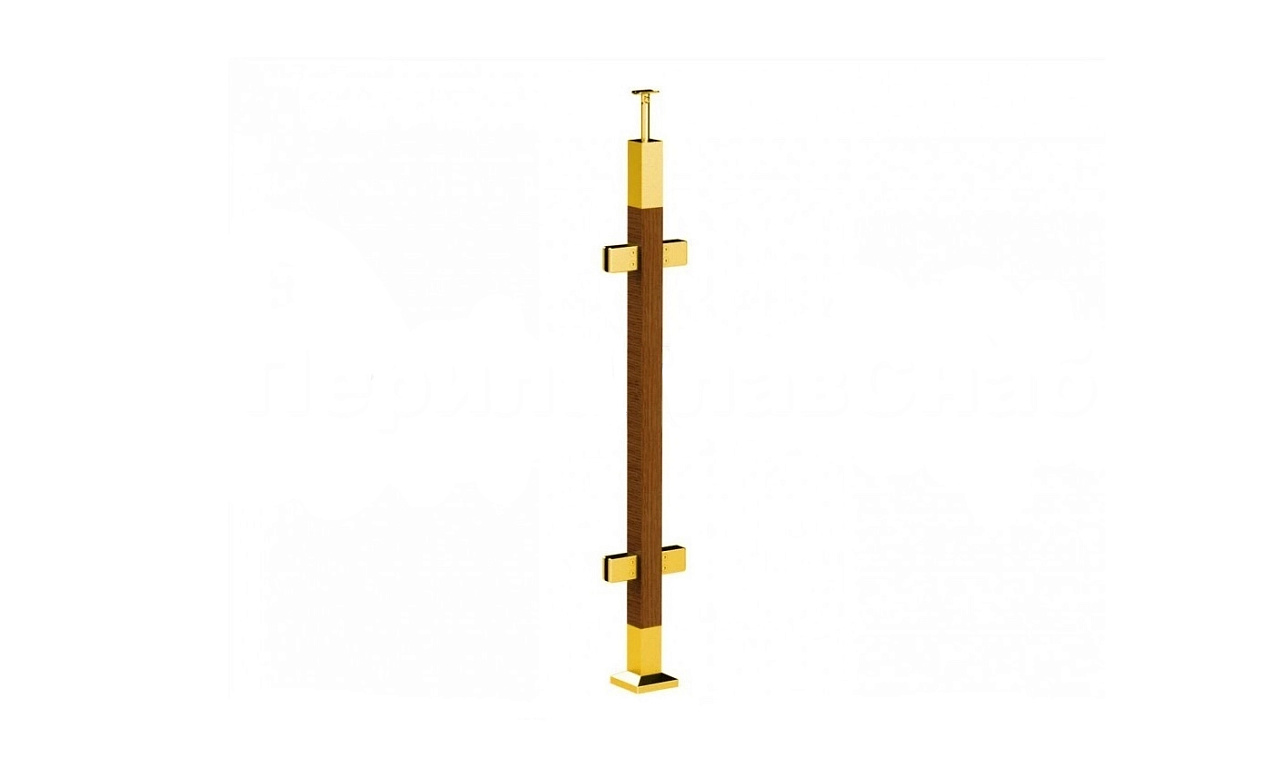 Готовая стойка 40х40х950 мм, деревянная, со вставками из нержавеющей стали 2х100 мм с 2 зажимными стеклодержателями, под золото k740-4-R-G купить в Перми
