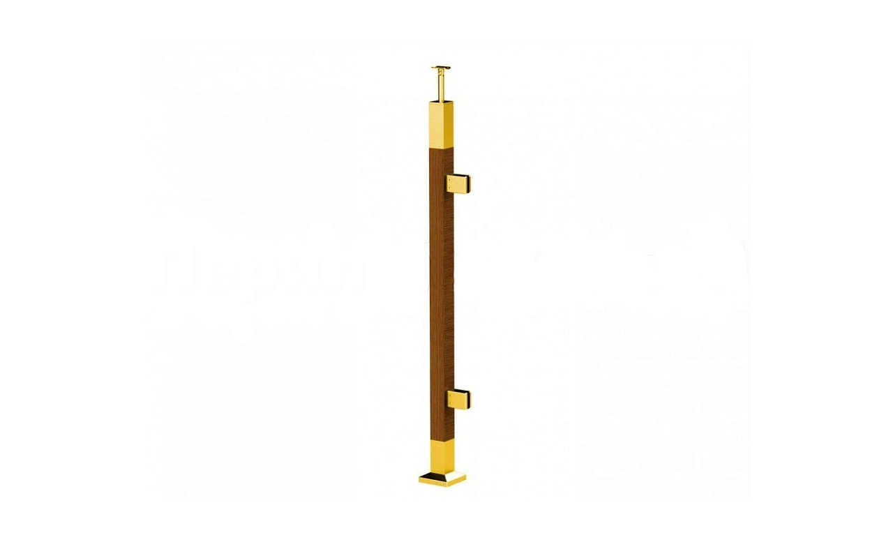 Готовая стойка 40х40х950 мм, деревянная, со вставками из нержавеющей стали 2х100 мм с 4 зажимными стеклодержателями, под золото k740-3-G купить в Перми