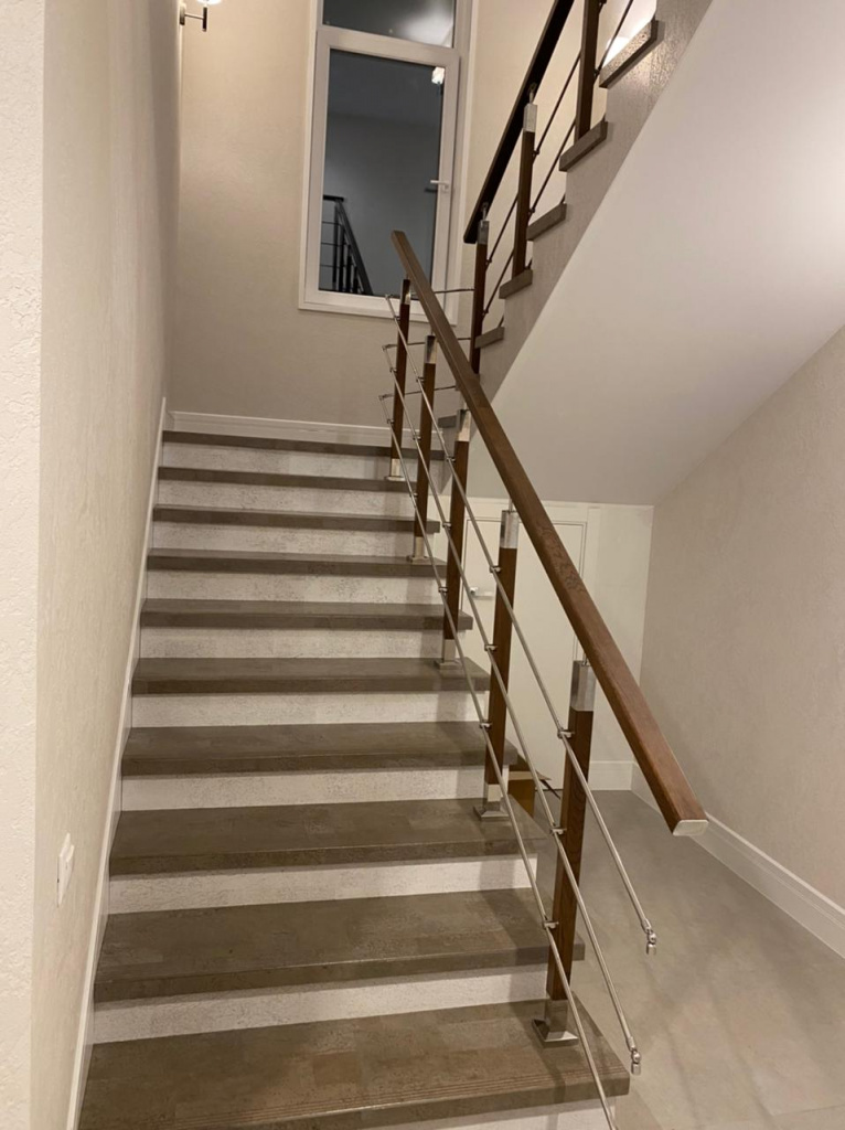 Готовая стойка 40х40х950 мм, деревянная нелакированная, со вставками из нержавеющей стали 2х100 мм k740