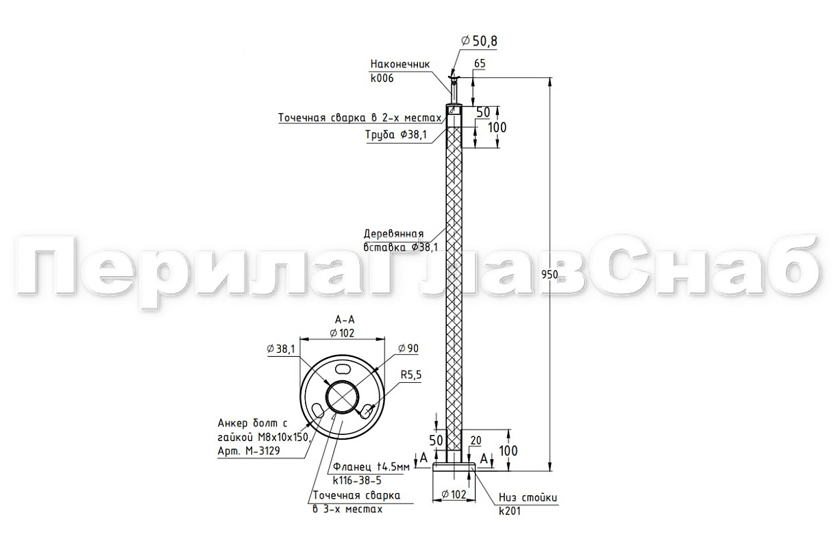 Готовые стойки – это экономия Вашего времени и денег. Приобретая готовую стойку Вы можете собрать ограждение сами, не привлекая монтажную бригаду и экономя денежные средства на монтаже. Стойка легко монтируется к полу благодаря треханкернуму фланцу с отверстиями под анкер-болт М8 ( , , ) или шпильку ( ; ) комплекте с хим анкером  или , а крепеж скрывает декоративная крышка идущая в комплекте стойки. Поручень из нержавеющей стали можно закрепить при помощи самореза (, , ), либо при помощи заклепки () и винта М6 (М-3973) что на порядок эффективней, для крепления при помощи заклепок необходимо растачивать отверстие в ложементе. Если вы используете пластиковый (, , , , , , ) или деревянный поручень, то его можно закрепить при помощи саморезов ( , , ). После покраски дубовой проставки подклеиваете клеем ( , ). Ограждение готово!