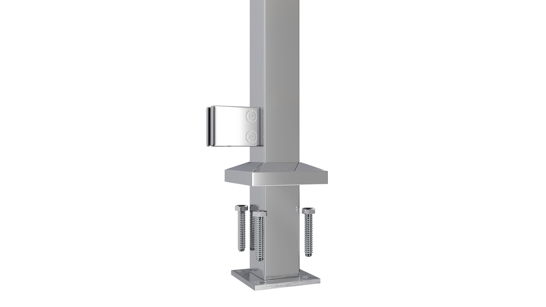 Cтойка квадратная 40х40: 2 литых квадратных стеклодержателя, полированная, высота 950 мм (aisi 304)