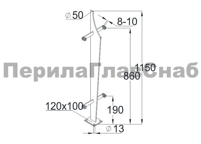 Готовая стойка Ø38,1х950 мм деревянная, со вставками из нержавеющей стали 2х100 мм с 2 стеклодержателями k741-2-L купить в Перми