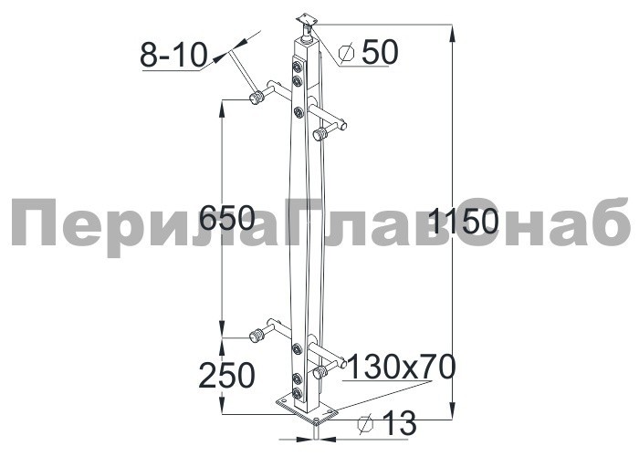 Готовая стойка Ø38,1х950 мм деревянная, со вставками из нержавеющей стали 2х100 мм с 4 стеклодержателями k741-3 купить в Перми