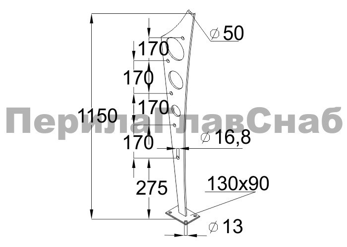 Стойка эксклюзивная с 5 отверстиями под ригель, крепление в пол, нерегулируемый ложемент (aisi 304)