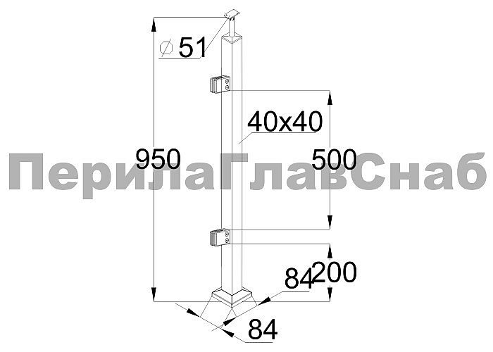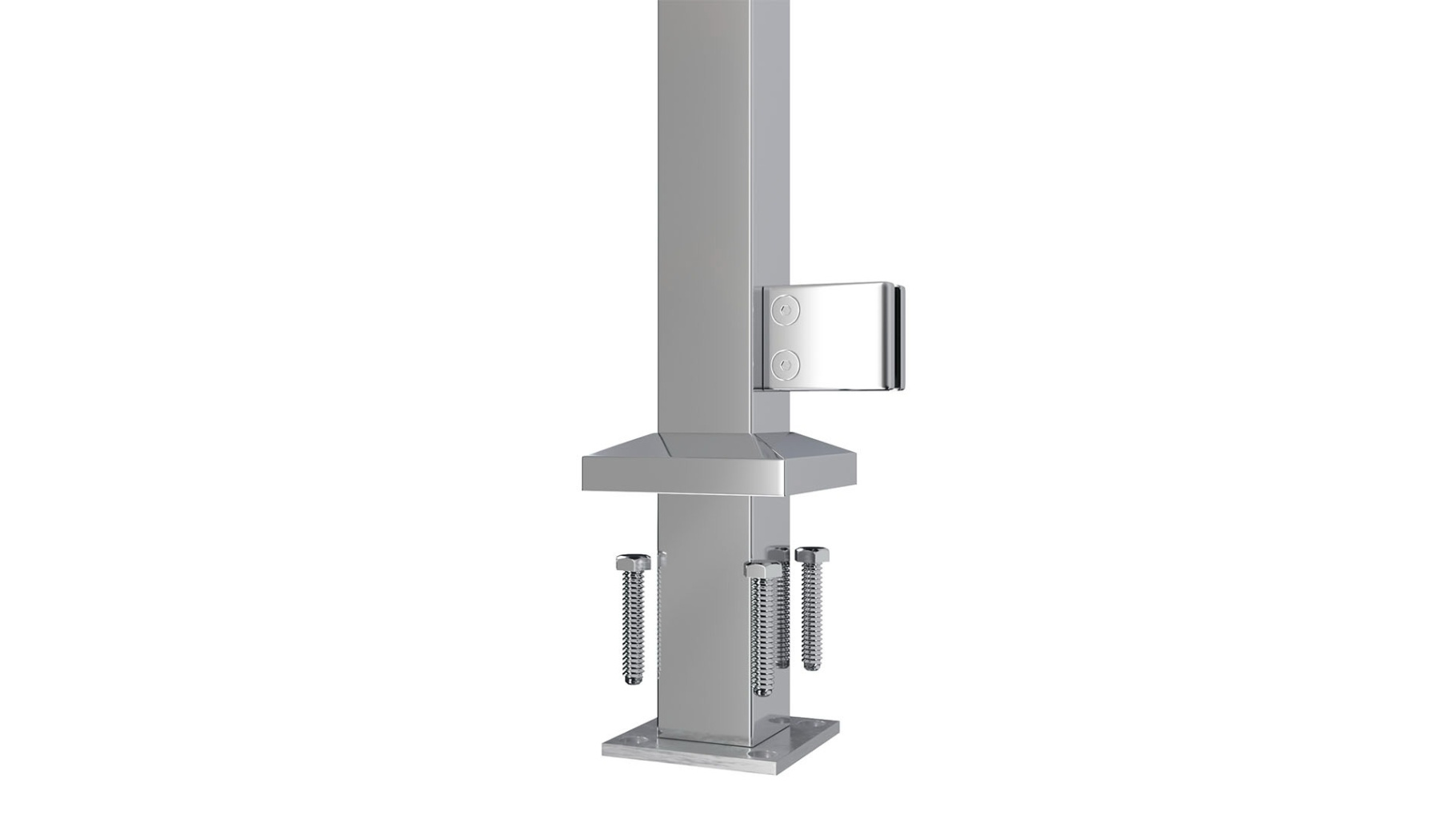 Cтойка квадратная 40х40: 2 литых квадратных стеклодержателя, полированная, высота 950 мм (aisi 304)