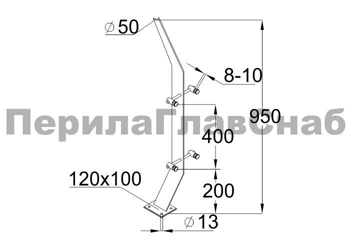 Готовая стойка 40х40х950 мм, деревянная, со вставками из нержавеющей стали 2х100 мм с 3 ригеледержателями k740-1-G купить в Перми