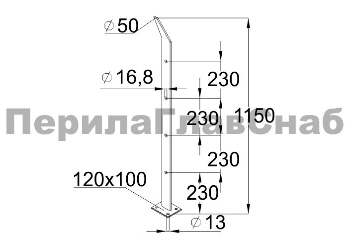 Стойка эксклюзивная с 4 отверстиями под ригель, крепление в пол, нерегулируемый ложемент (AISI 304) k767