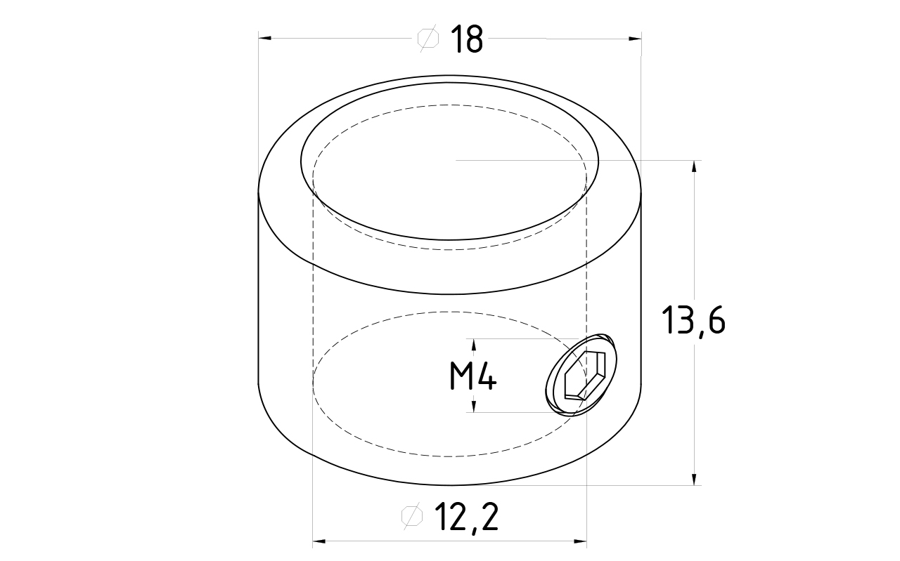 Заглушка наружная с отверстием на трубу диаметром 12 мм. Деталь полированная, штампованная. Марка стали - AISI 304
