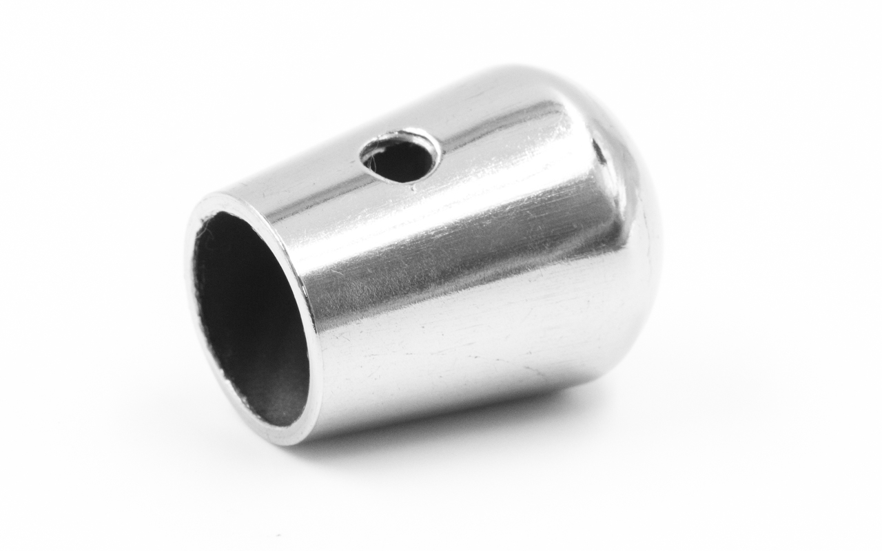 Заглушка для трубы диаметром 12 мм. Деталь полированная, фиксируется винтиком, марка стали - AISI 201