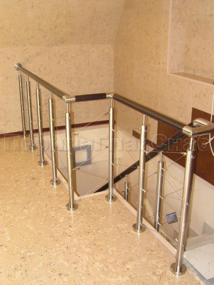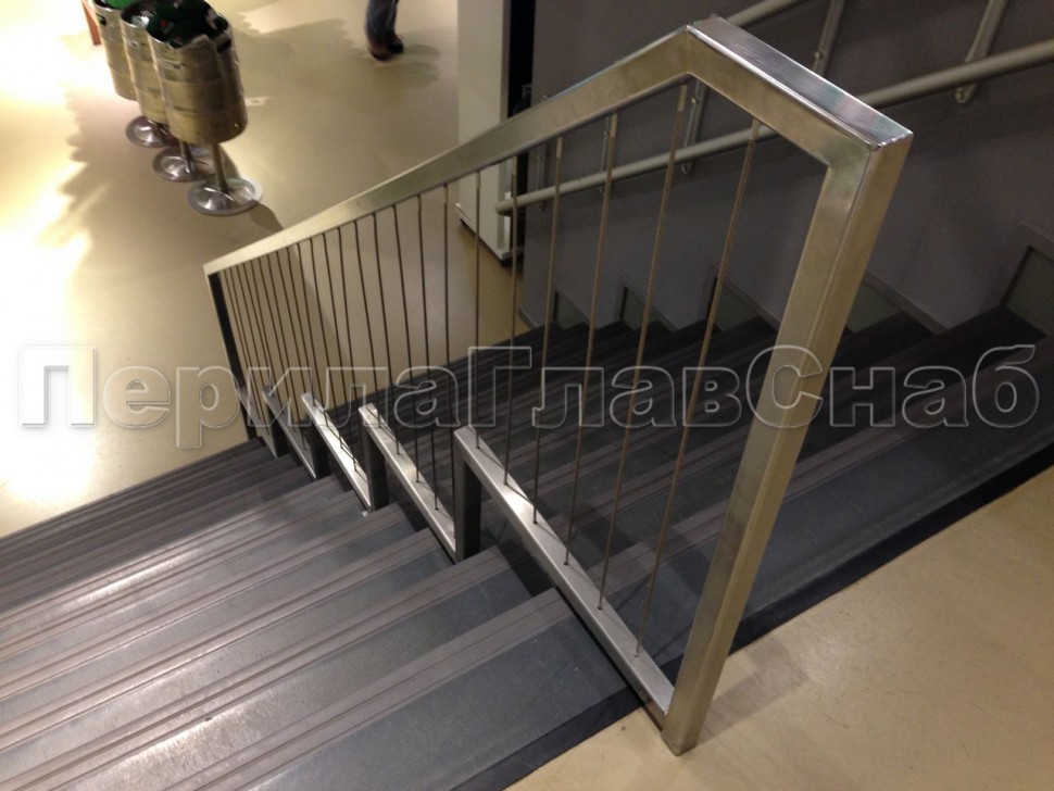 Ограждения из нержавейки. Заполнение из 4х тросиков. Квадратные стойки.