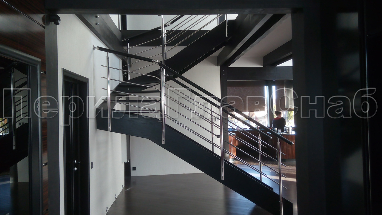 Три ригеля на держателях, круглый поручень и круглые стойки для крыльца в Перми. Готовые проекты ПерилаГлавСнаб