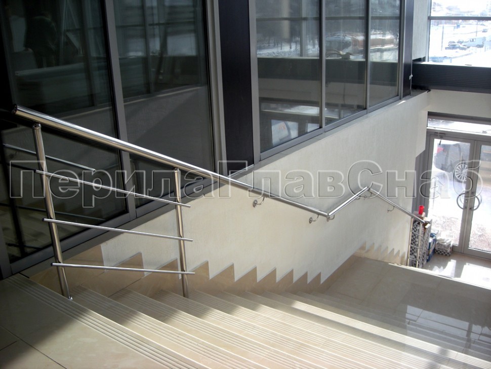 В крупнейшем торговом центре г. Щербинка была установлена целая сеть ограждений из нержавеющей стали, это и перила на входе, и пандусы с ограждениями и поручнями для маломобильной категории граждан, в частности инвалидов и детей.