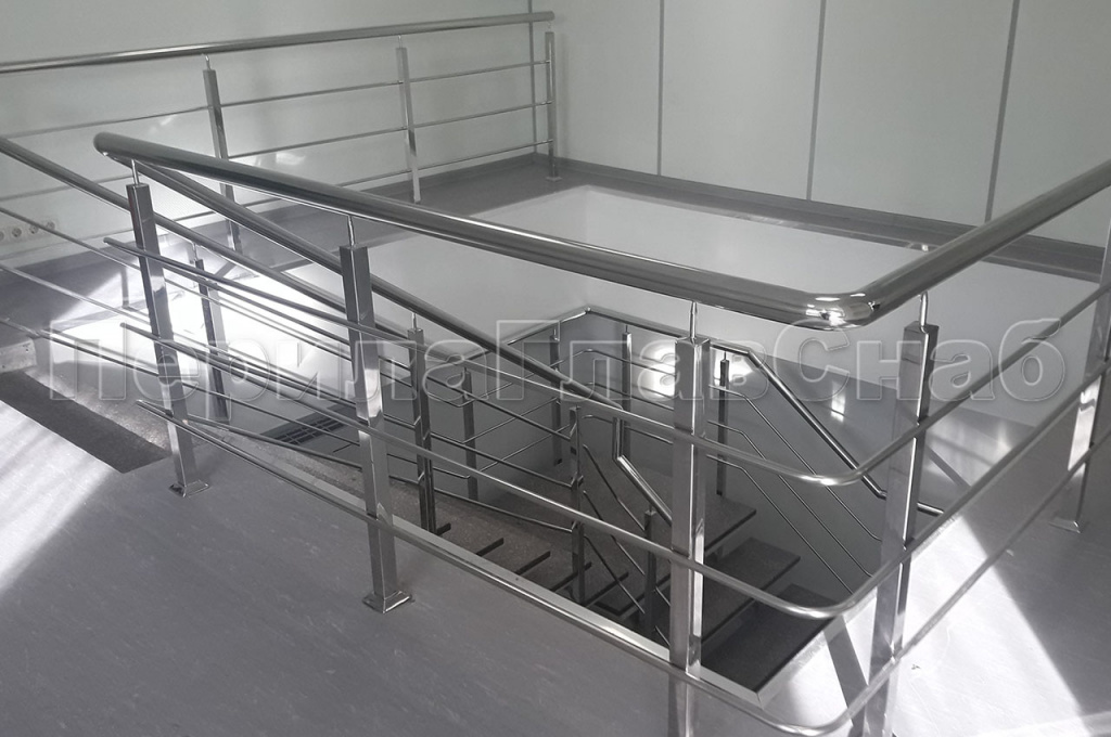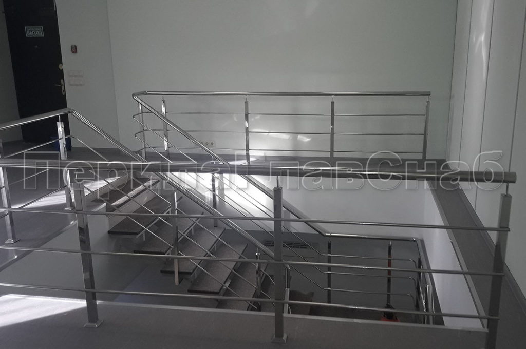 В связи с реконструкцией офисного помещения, находящегося в поселке возникла потребность в изготовлении и монтаже лестницы, высотой четыре метра, с первого на второй этаж, с двумя промежуточными площадками. К нам в компанию обратился заказчик за помощью в решении этой задачи.  На первом этапе для моделирования и составления расчетов лестницы, нашим конструкторским отделом был разработан, проект на данную лестницу. После согласования проекта с заказчиком, приступили к изготовлению и монтажу лестницы. Конструкция косоуров и площадки, выполнены из профильной трубы марки стали 3. Каркас ступени и площадки был сформирован из листа в виде корыта, для последующей заливки их бетоном. Вся конструкция лестницы сварная с последующей зачисткой швов всего металлокаркаса, шпатлевкой, грунтовкой и покраской пульверизатором по каталогу Ral. Ограждения на лестницу были выполнены из полированной нержавеющей стали. Стойки перил изготовлены из профильной трубы 40*40мм, крепились к косоуру лестницы на сварку. Поручень из трубы диаметром 50 мм крепился к стойке через наконечник штырь на сварку, поручень завязан по всей длине лестницы. Заполнение между стойками ригельное из трубы диаметром 16 мм, ригель крепился к стойке сваркой снизу. Все сварные швы ограждения были зачищены и заполированы. С задачей справились. Работы по изготовлению и монтажу лестницы и перил, были выполнены в течение шестидесяти рабочих дней.