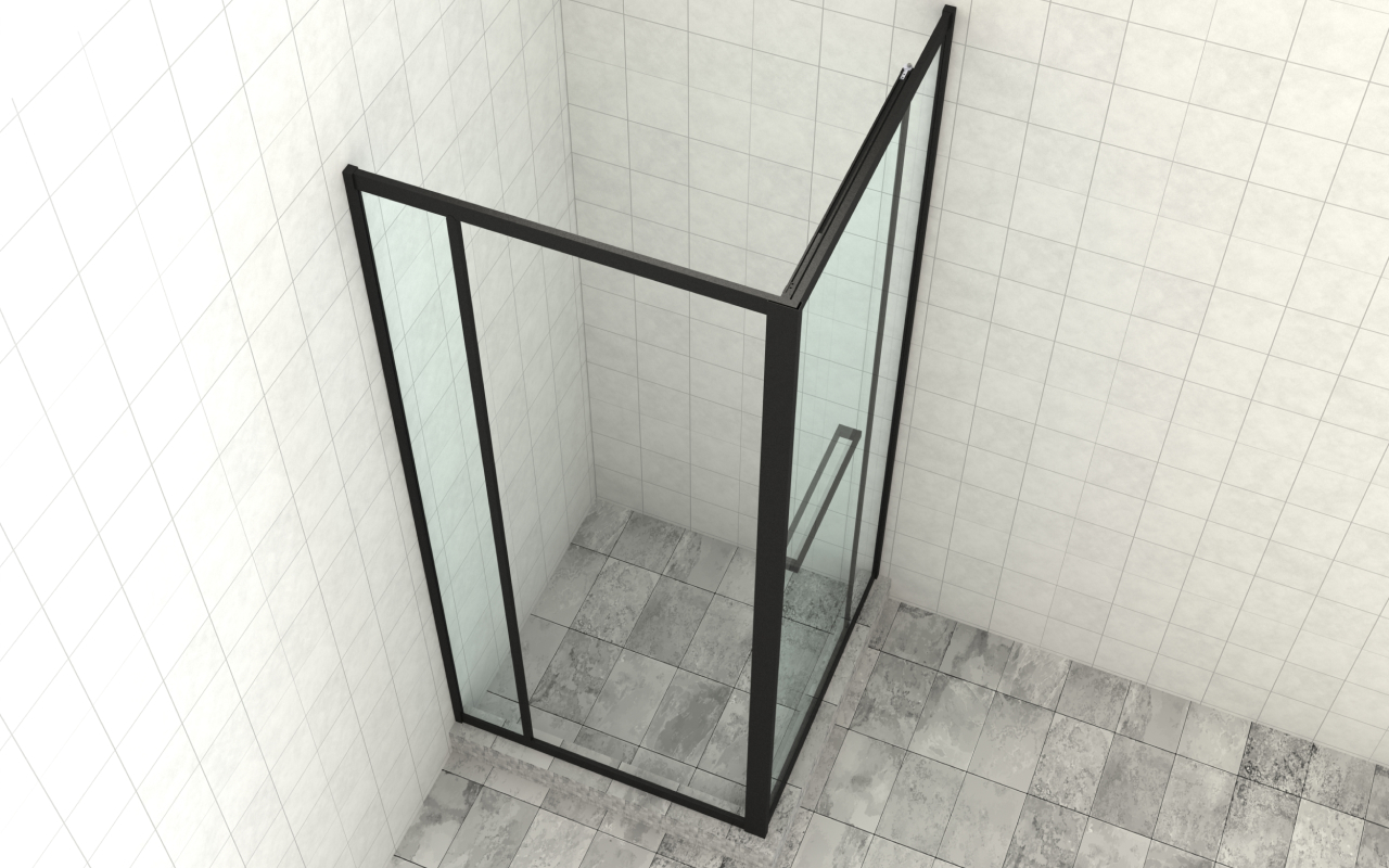 Комплект душевой с внутренней подвижной дверью,толщина стекла 8мм, 900х900х2000, AUSI 304, черная t470 Bl