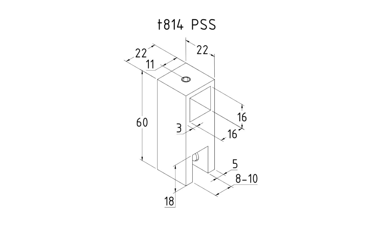 Крепежный элемент сквозной для трубы 15х15мм, полированный t814 PSS