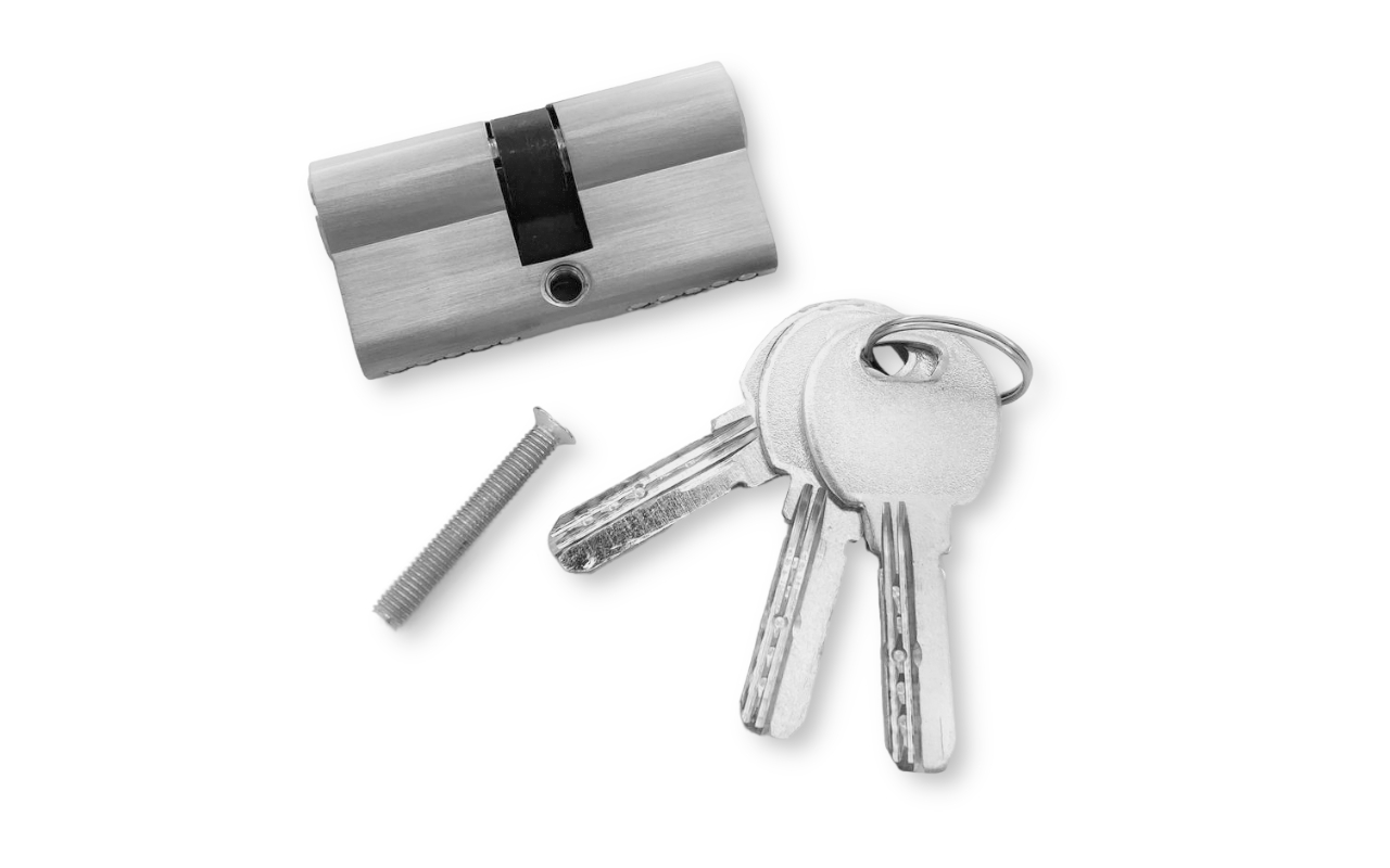 вставить личинку в отверстие. После этого нужно совместить крепежное отверстие на личинке с отверстием в корпусе замка. На этом этапе необходимо вставив шуруп «поймать» отверстие личинки и вкрутить шуруп до конца, не забыв после этого проверить работоспособность запирающего устройства. И собрать замок обратно